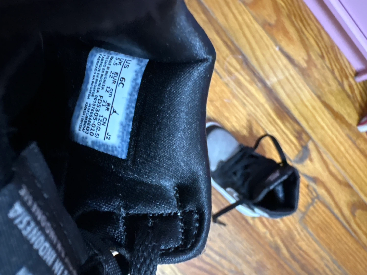 15These cute Nike Air Jordan 1 High shoes are perfect for your little one! They're toddler size 6C and feature a stylish black and silver color scheme