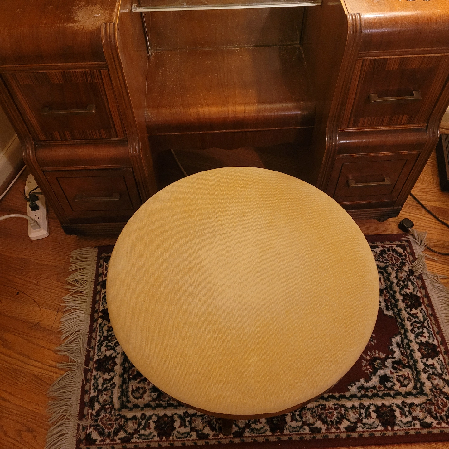 65Selling a beautiful authentic art deco waterfall bedroom set! It includes an armoire/dresser, vanity with round stool and a nightstand. All pieces feature a stunning wood grain and classic waterfall design. This set would be a wonderful addition to any bedroom with a vintage aesthetic in good shape considering age but could use some tlc/staining on vanity table top surface. must be picked up and moved by purchaser dimensions are as follows: dresser/armoire is 33" w x 62.5" h x 18.5 d night stand is15" w x 28" h x 11.5" d vanity is 41.2" w x 28" h (table top) or 6" h with mirror and 16.5" d