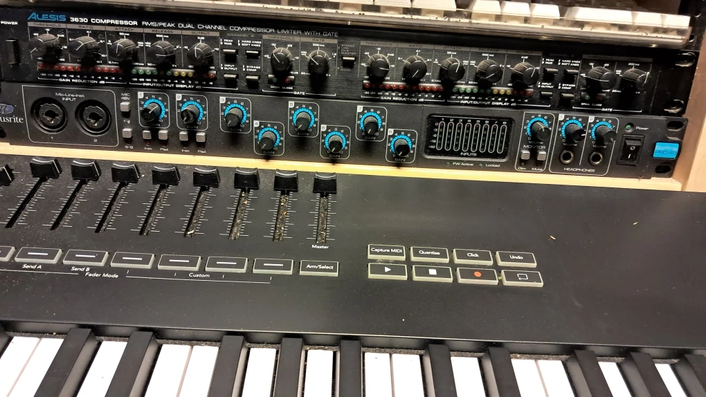 This is a Focusrite Saffire PRO 40 audio interface. It's a professional audio device for recording and mixing. It features multiple inputs and outputs for connecting instruments and microphones.works without any issues