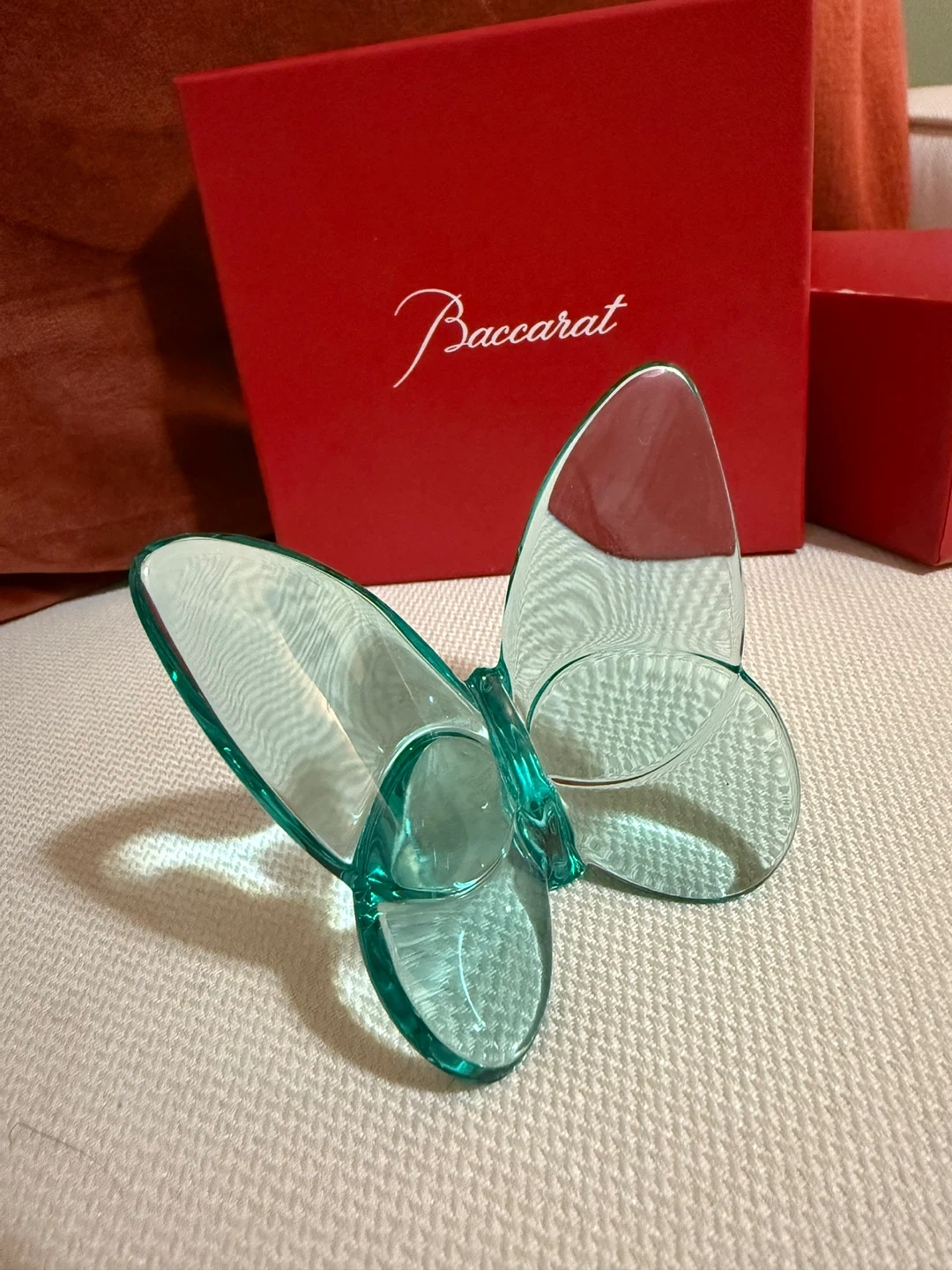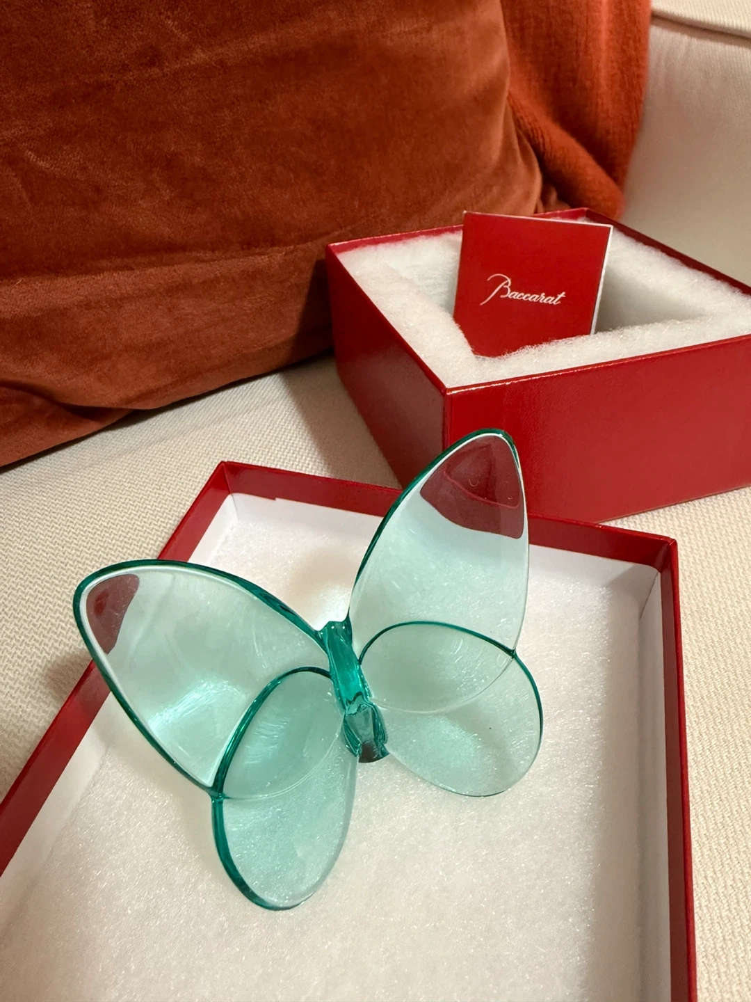 The Turquoise Baccarat Lucky Butterfly features a diamond cut design giving brilliant reflections of light. A stylish gift for any occasion. It comes with its original box.