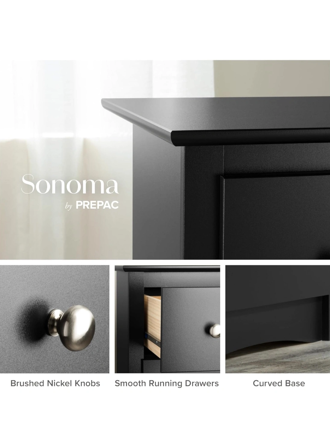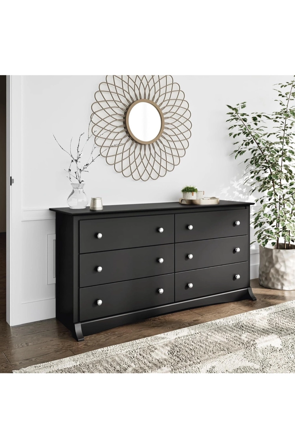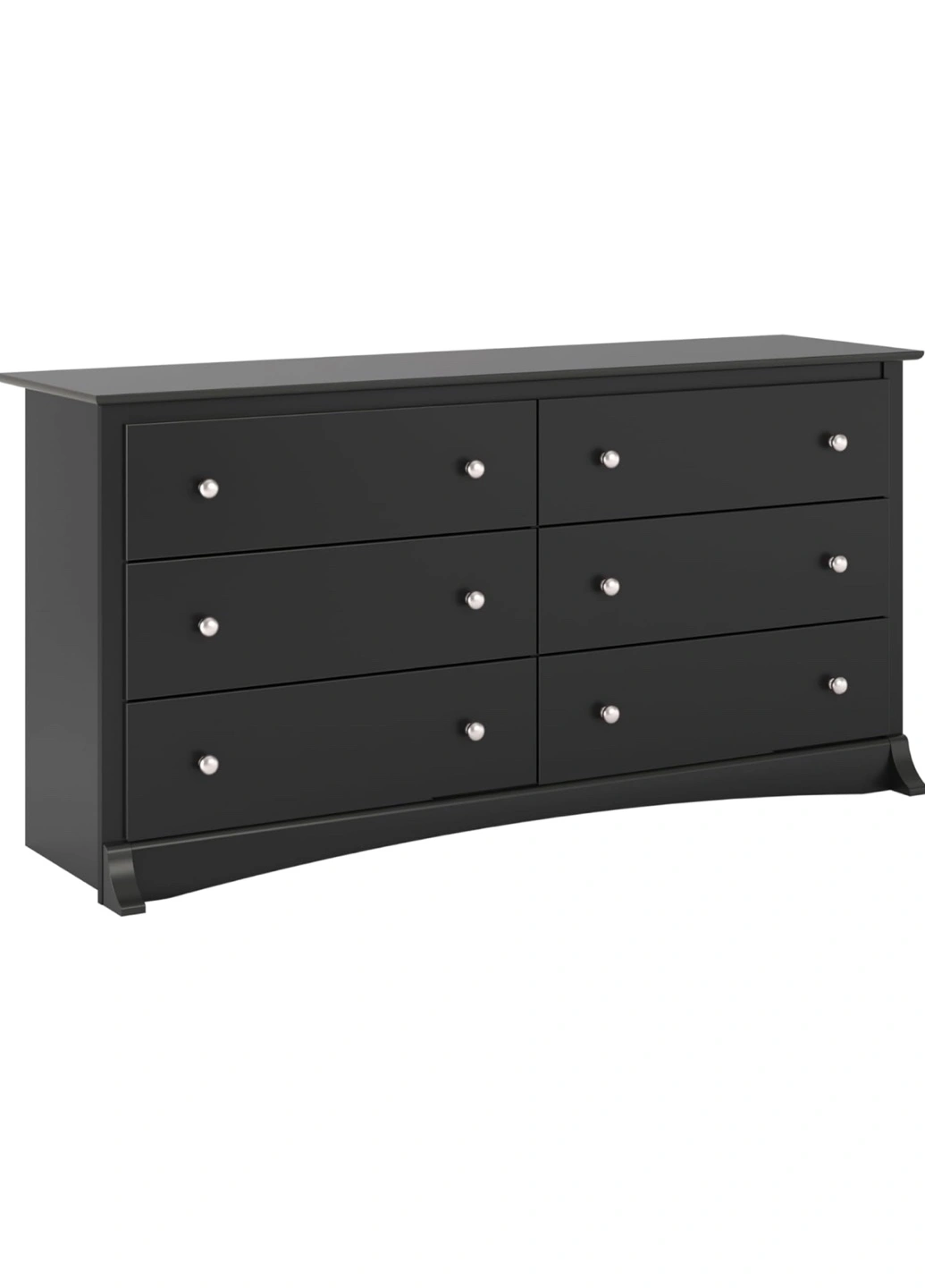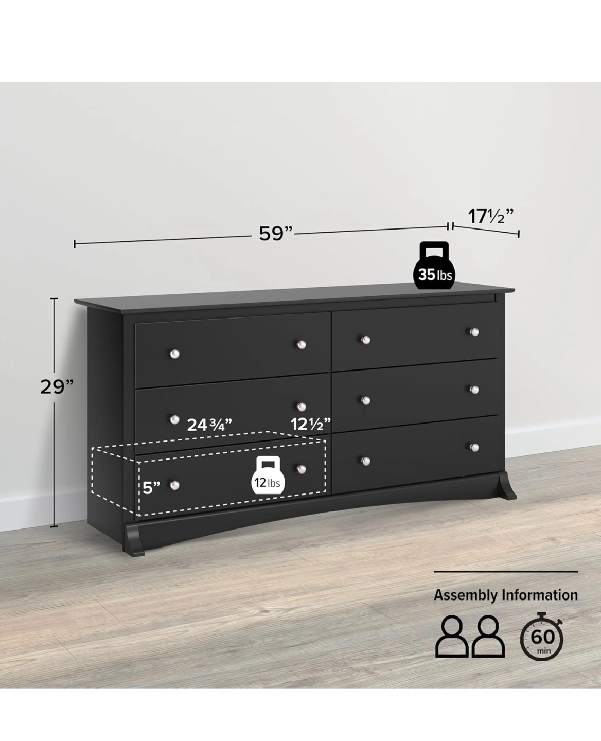 It's 17.5" D x 59" W x 29" H, perfect for adding storage to any room. Features brushed nickel knobs and smooth running drawers. Brand new in the box