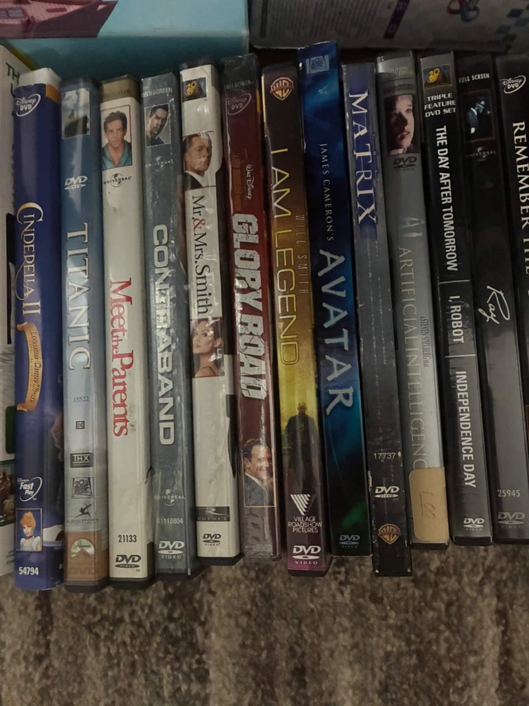 Selling a collection of DVDs, including titles like The Simpsons, Titanic, Avatar, and Batman. Great for movie nights or adding to your collection!