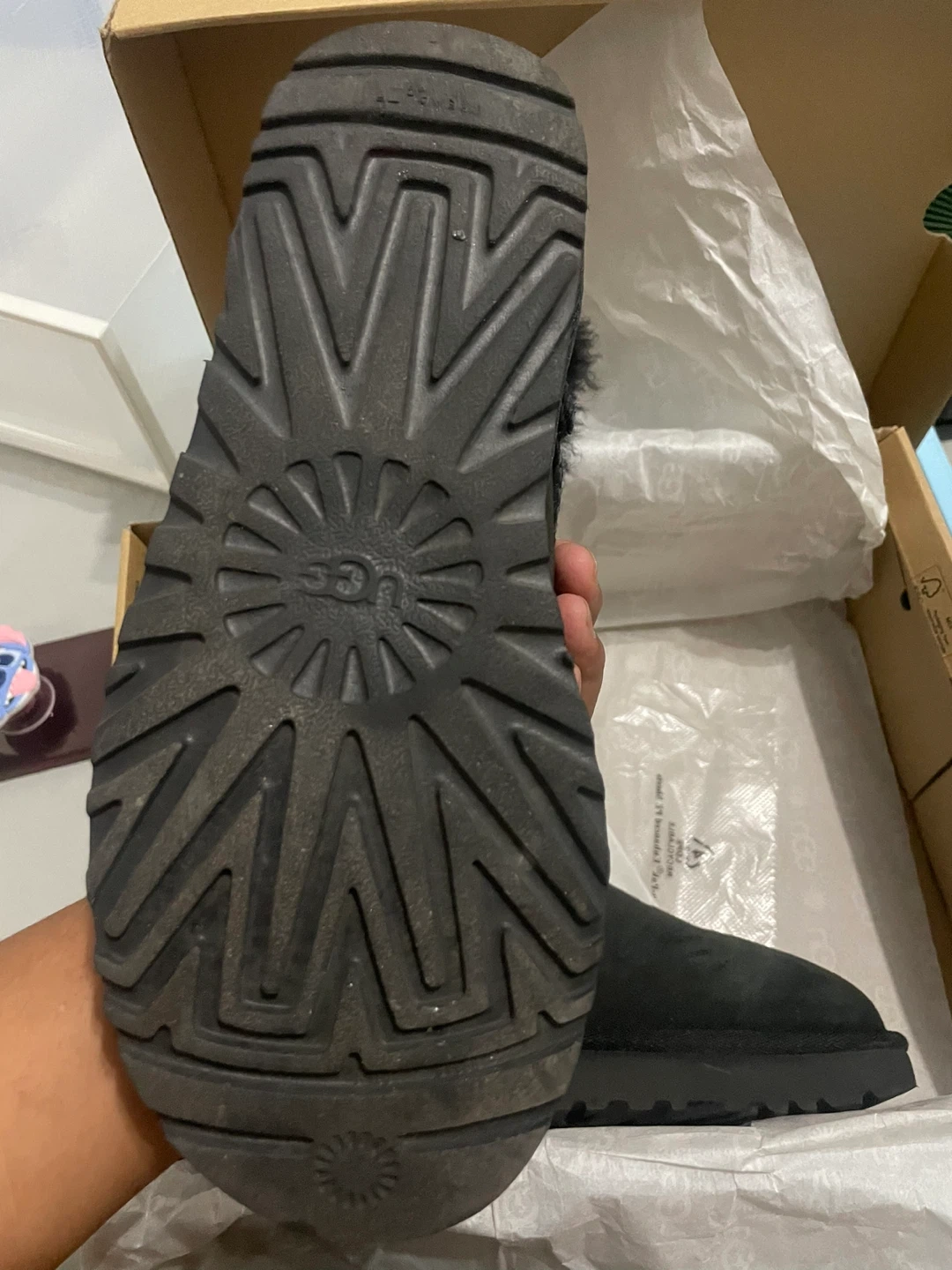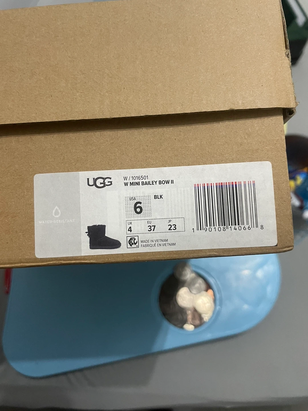 Selling a pair of UGG Mini Bailey Bow II boots in black, size 6. They're in great condition and come with the original box