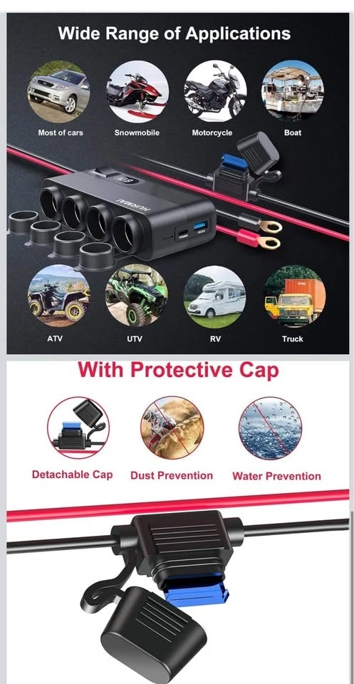 12V Multi-Port Power Outlet with 10FT Cable