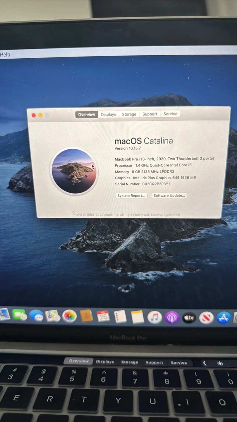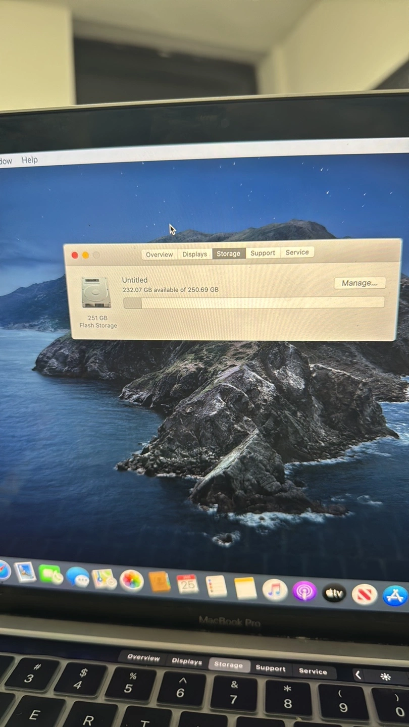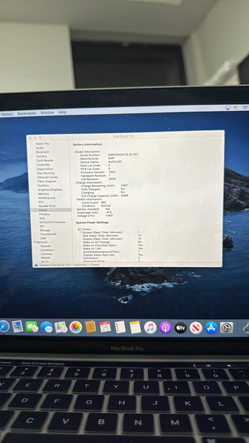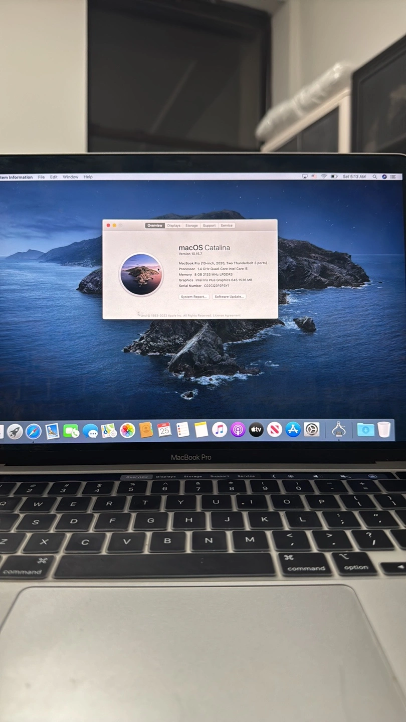 1.4 GHz Processor Quad Core Intel Core i5. 8GB RAM 2133 MHZ. 250 GB Flash Storage. Good Battery Life 280 Cycle Count. Silver MacBook Pro. Two Thunderbolt ports. Good condition. Includes charger.