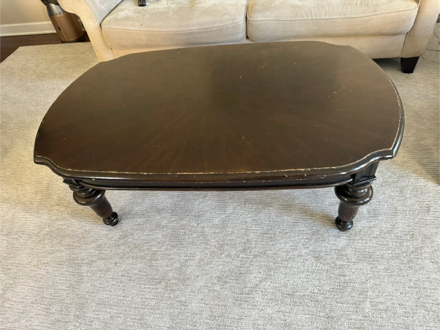 Coffee table and 2 Accent table with dark wood finish. carved legs.