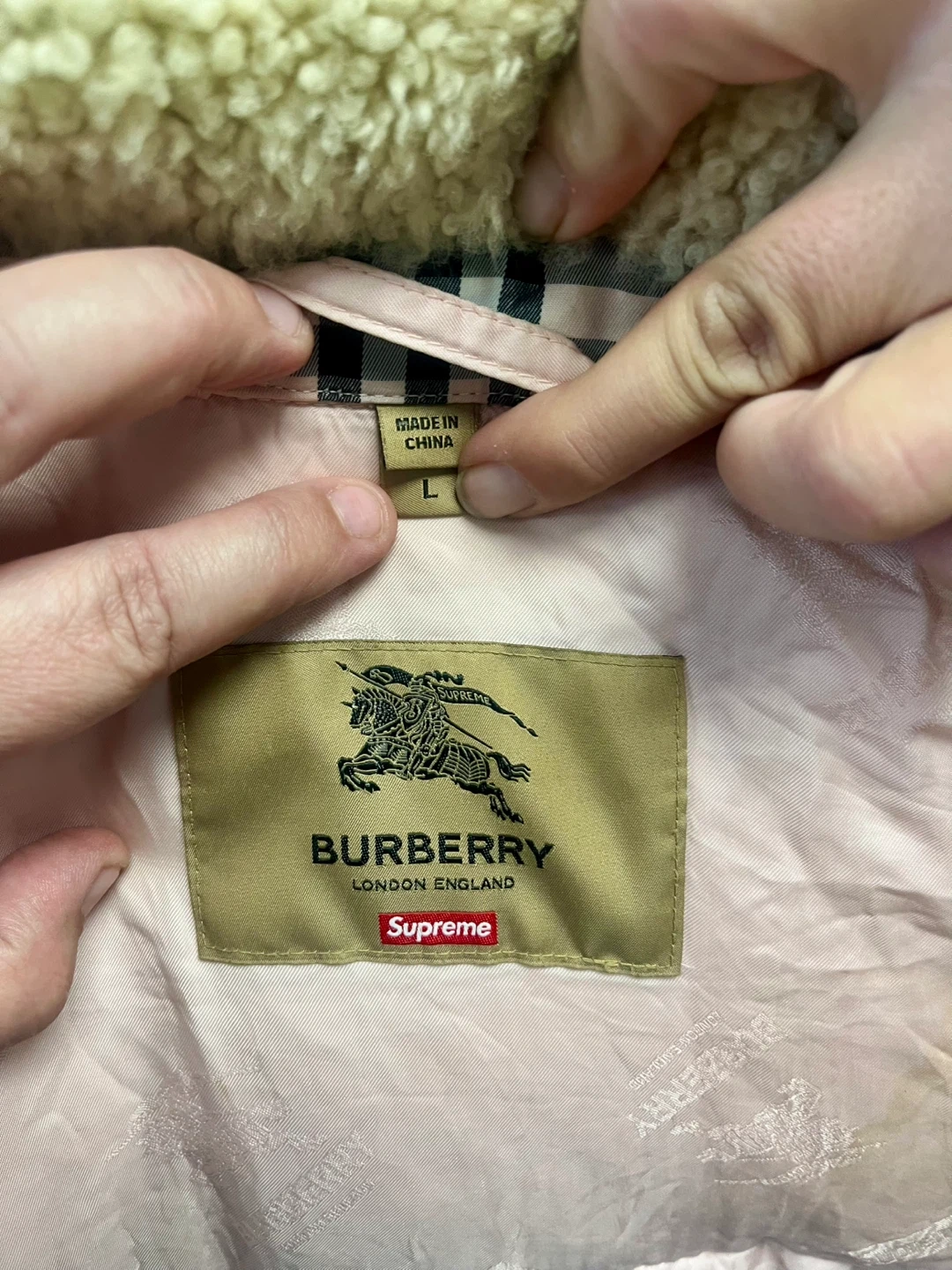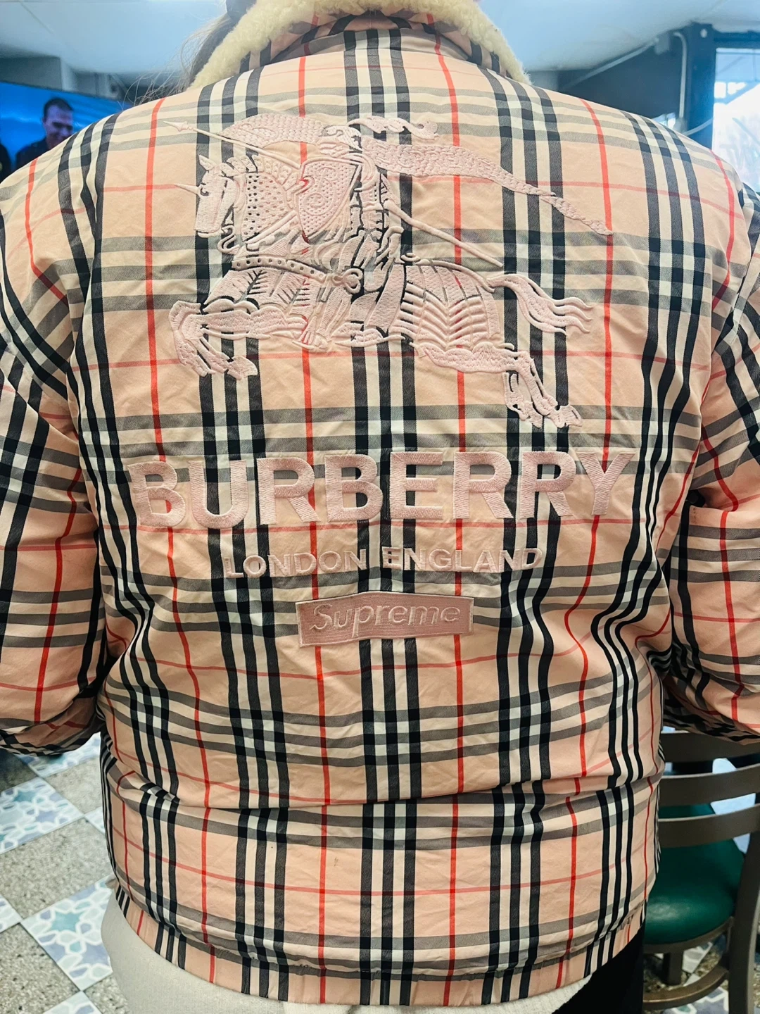 Selling a Burberry London England Supreme jacket. This jacket features a distinctive plaid pattern and a cozy fur collar. It's in great condition and ready to keep you warm and stylish! Offers are welcome cash or half cash half zelle