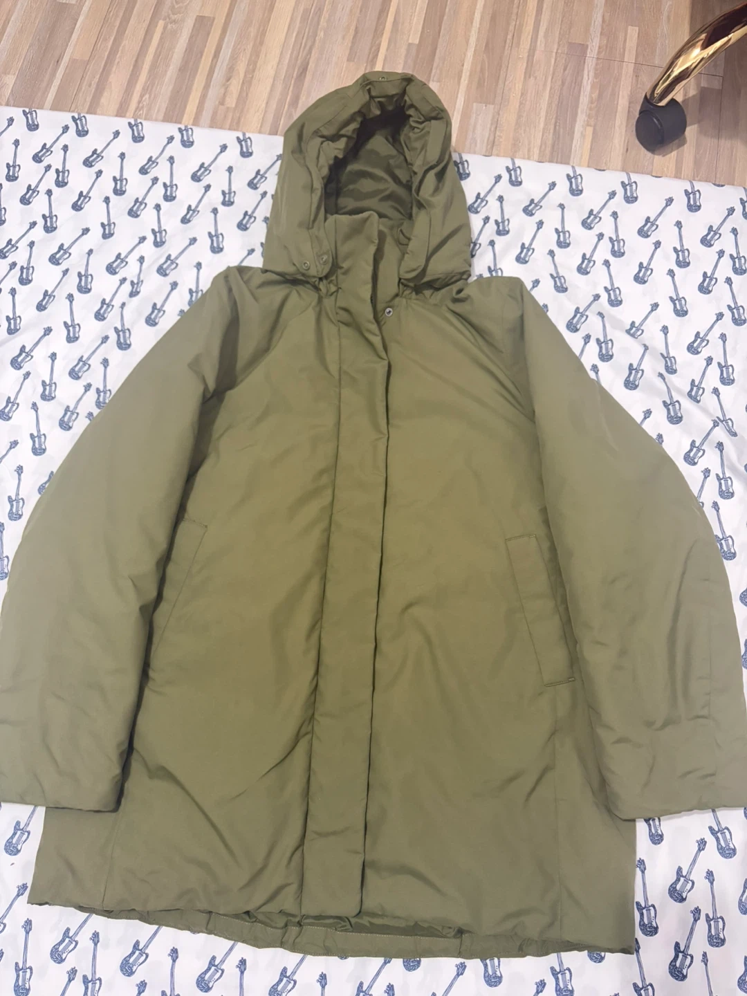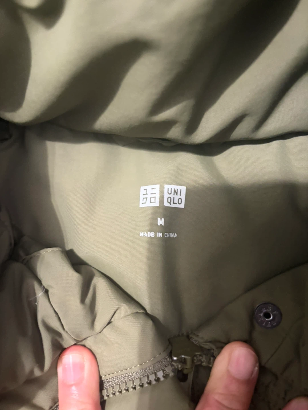 Olive green hooded parka jacket from Uniqlo. It's a size medium. This jacket is perfect for cooler weather!