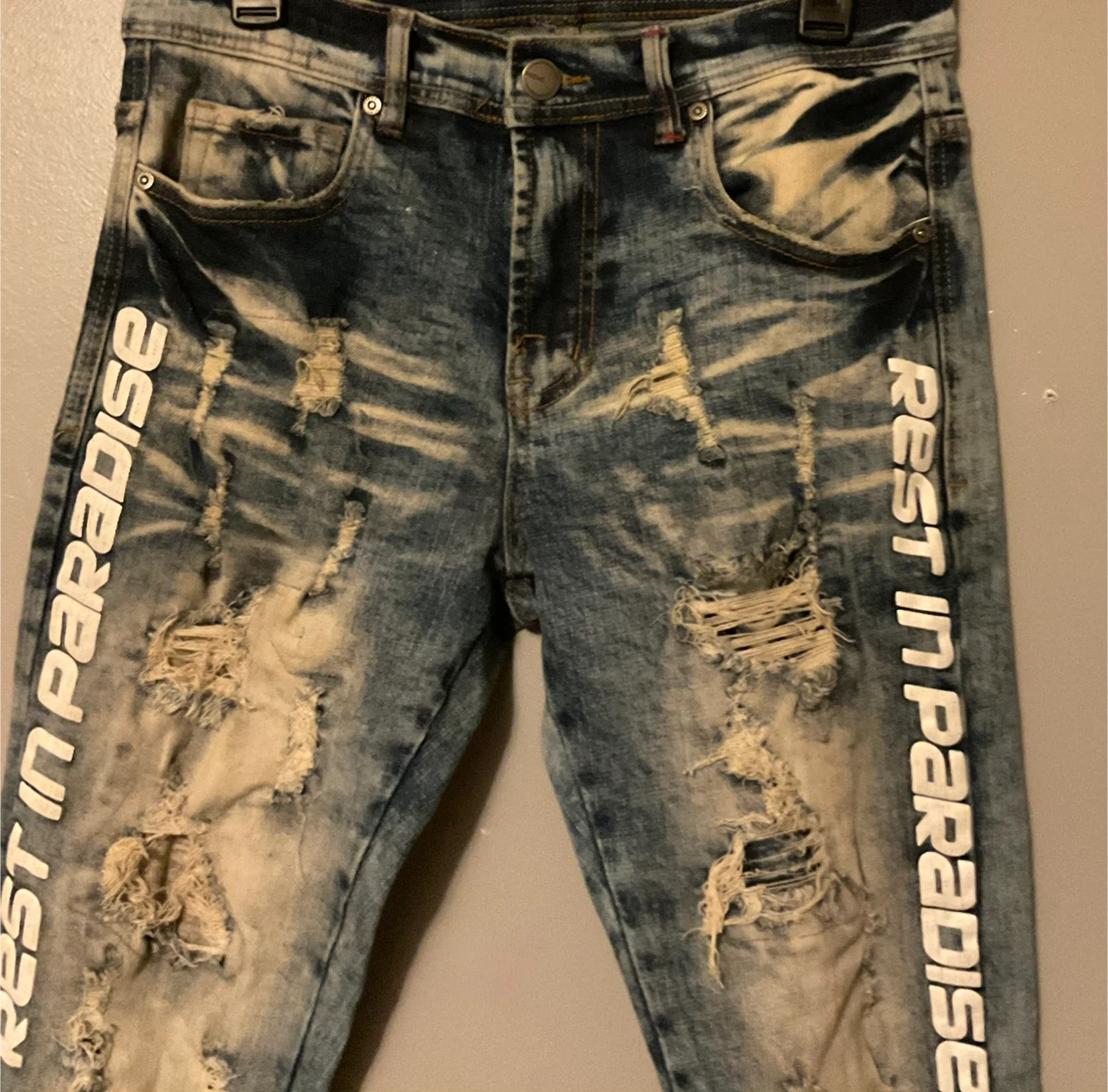 PREME "Rest in Paradise" Distressed Blue Jeans