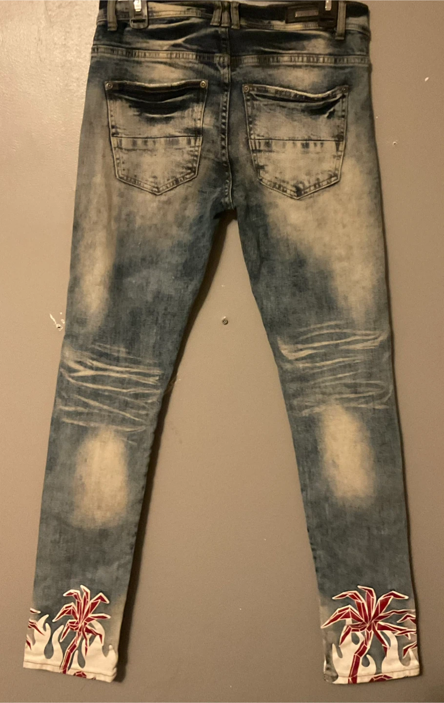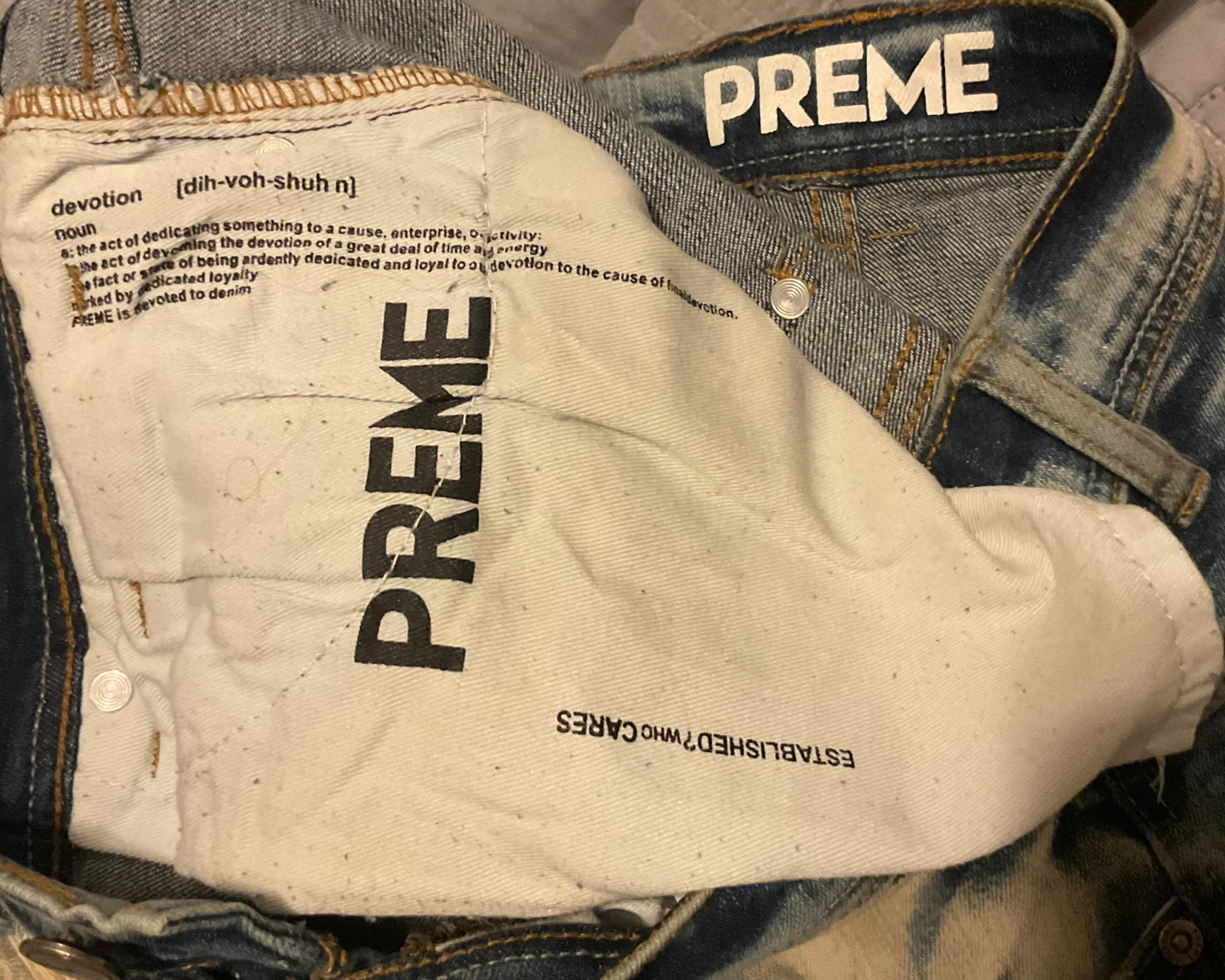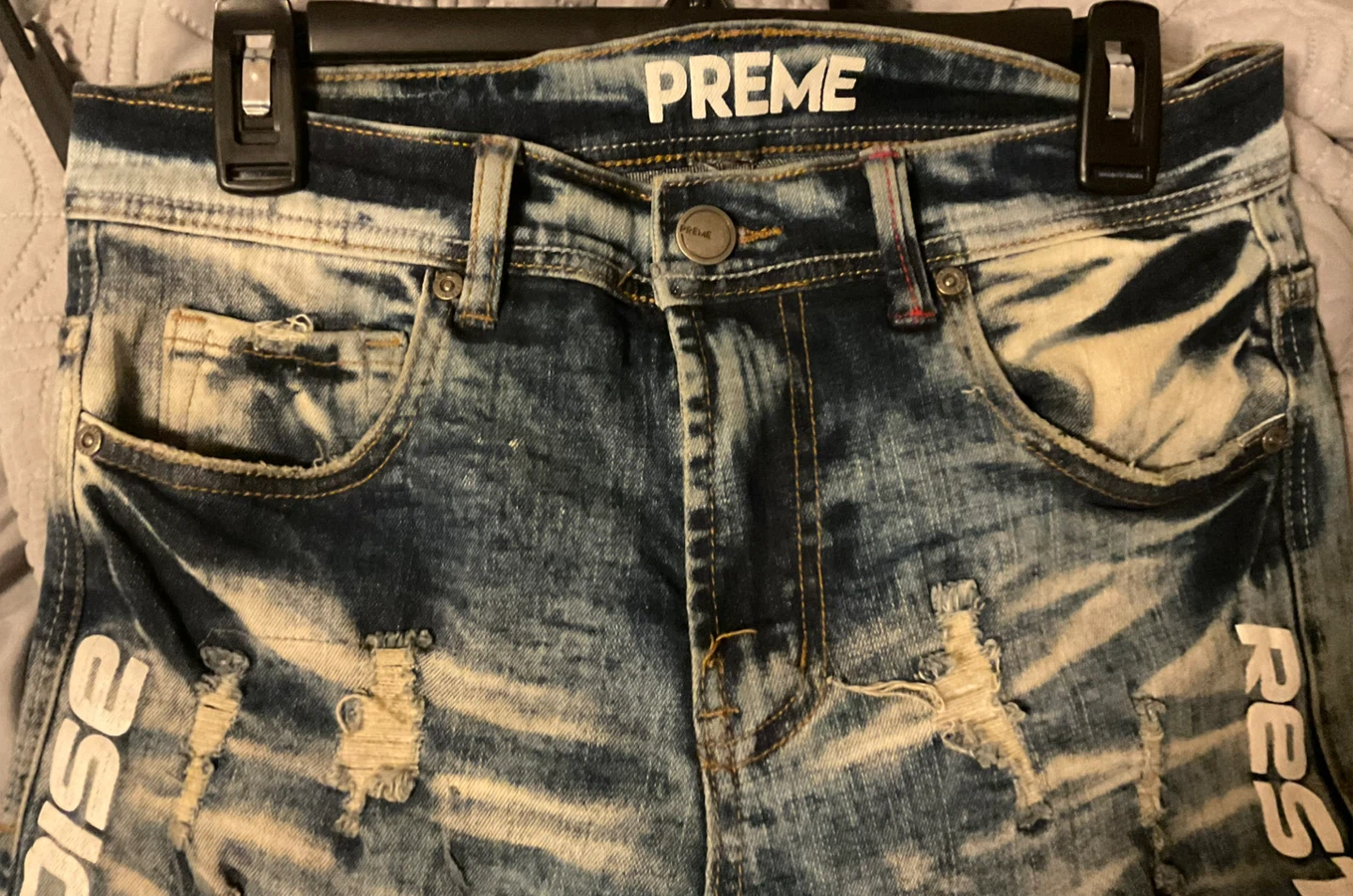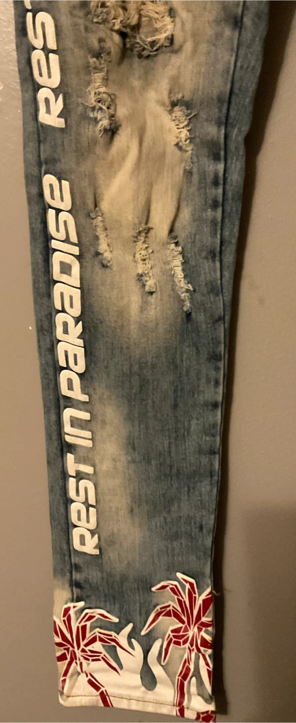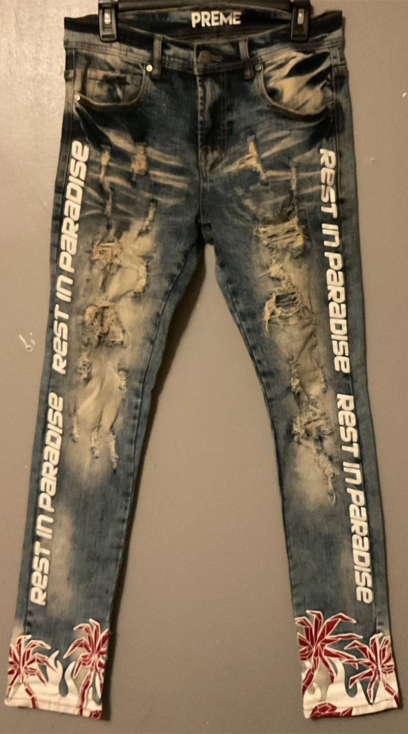 PREME "Rest in Paradise" Distressed Blue Jeans