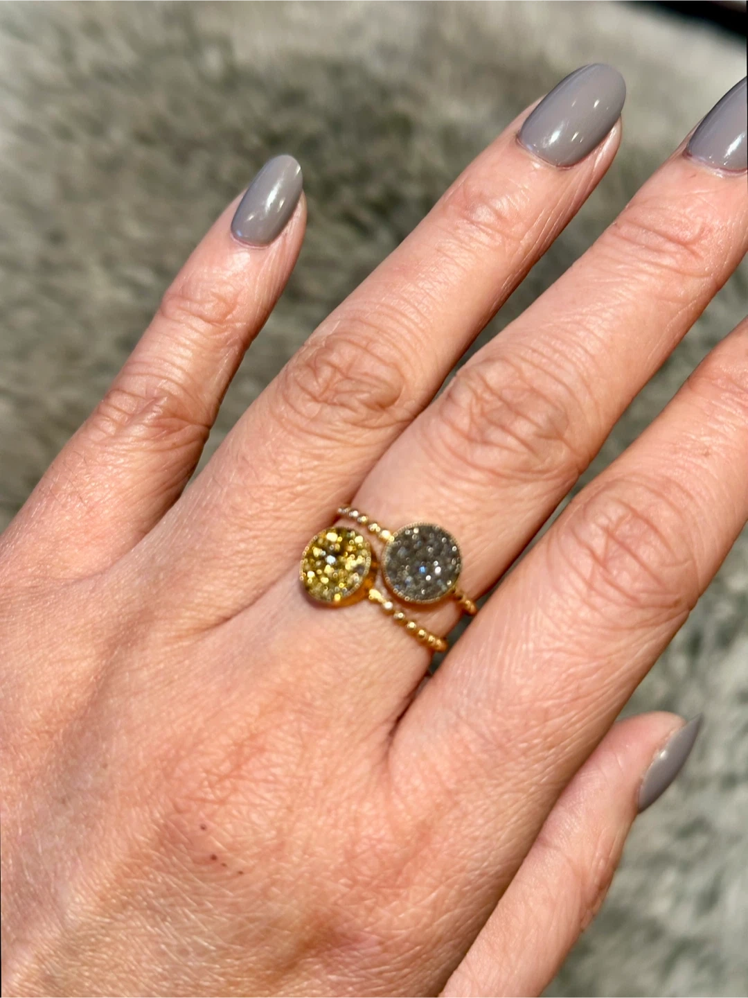 2 rings- 14k solid gold Ring with Druzy Stone