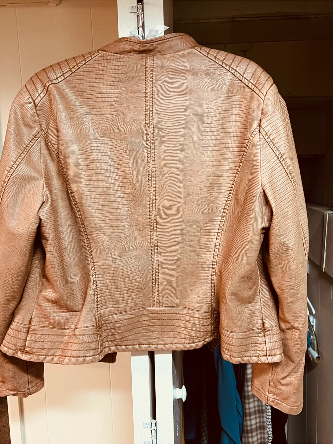Style: Moto/biker jacket with an off-center front zipper and zip-up pockets.