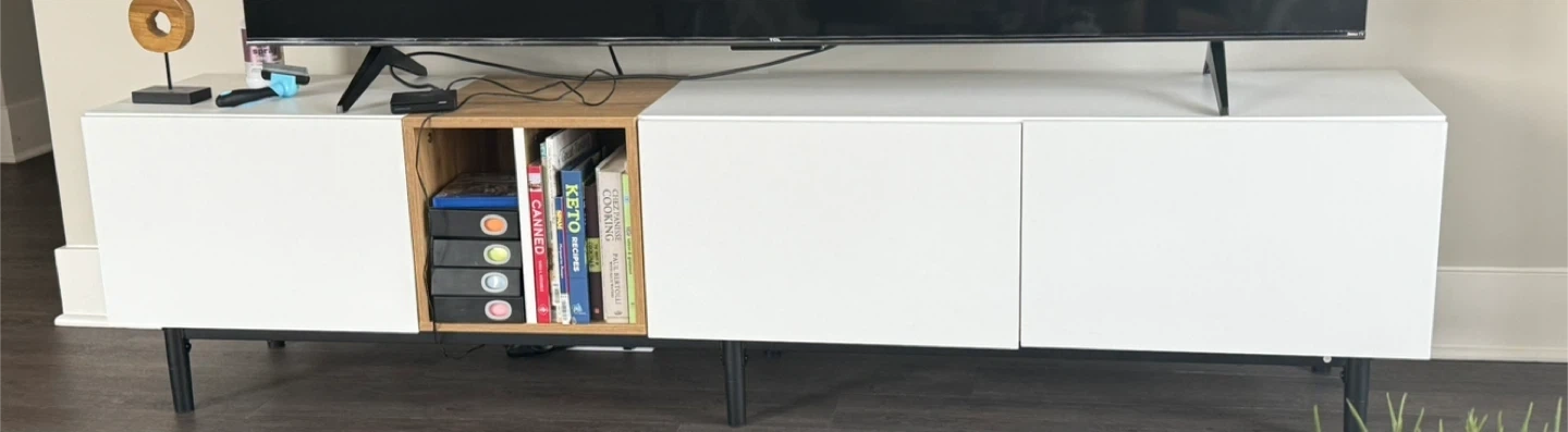 Open to all offers!! White Media Console with Wood Accent 🥕