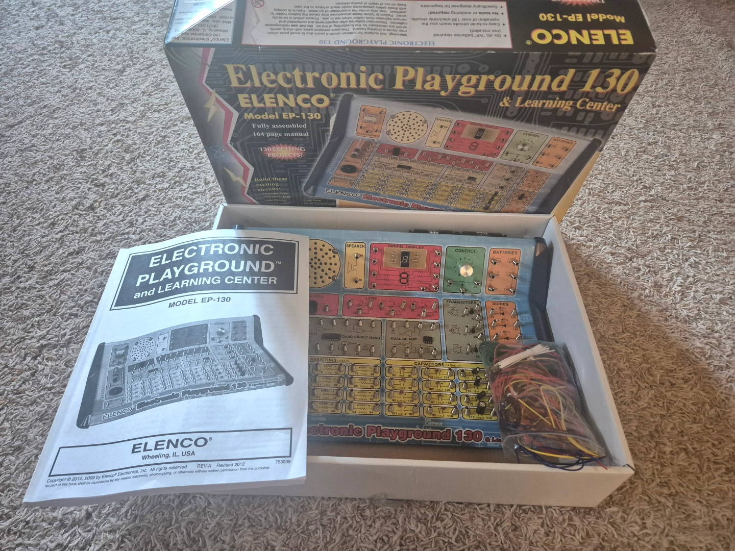Elenco Electronic Playground 130 Model EP-130. Fully assembled. 130 exciting projects. Learn by doing. For ages 12 and up. Includes 164 page manual.