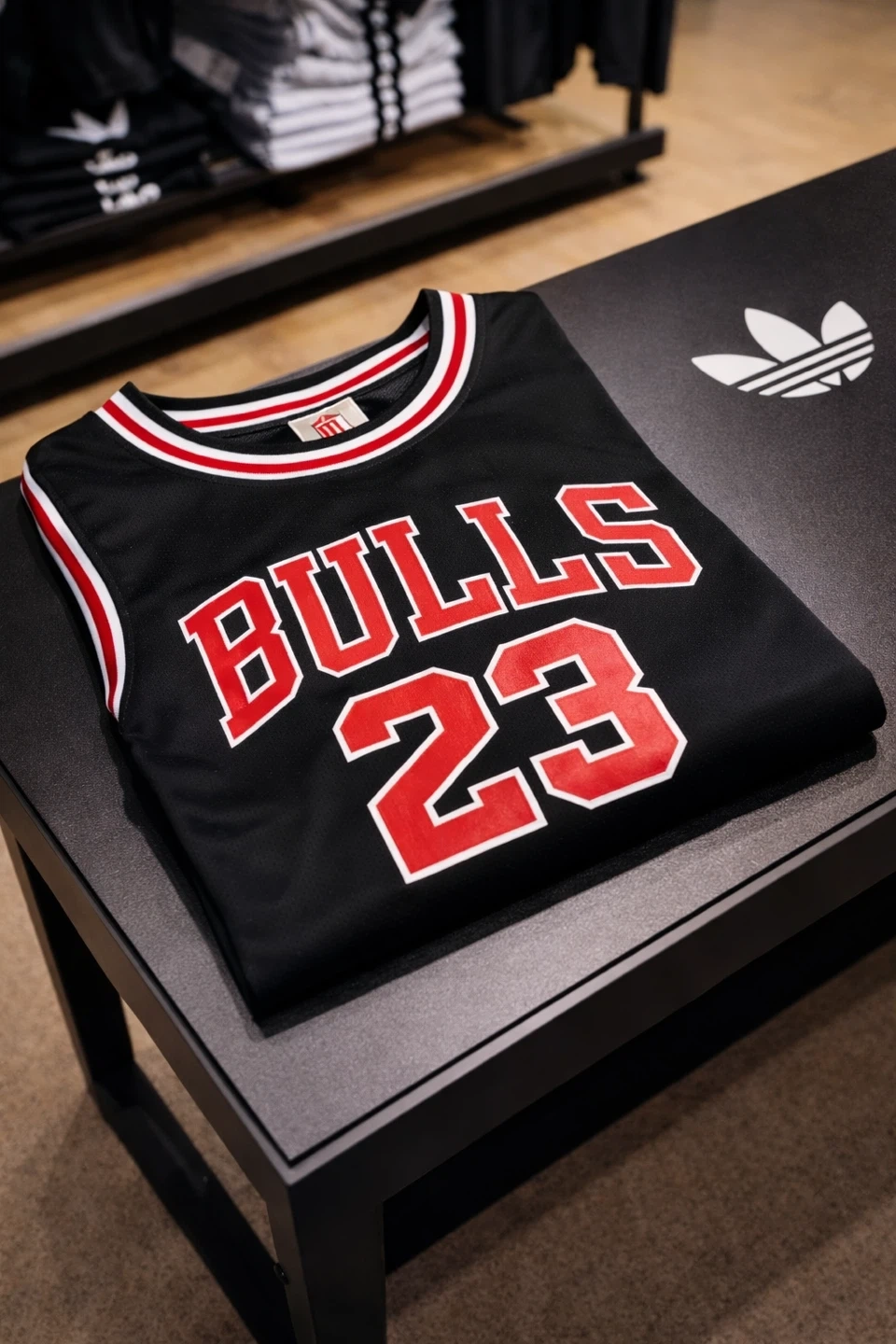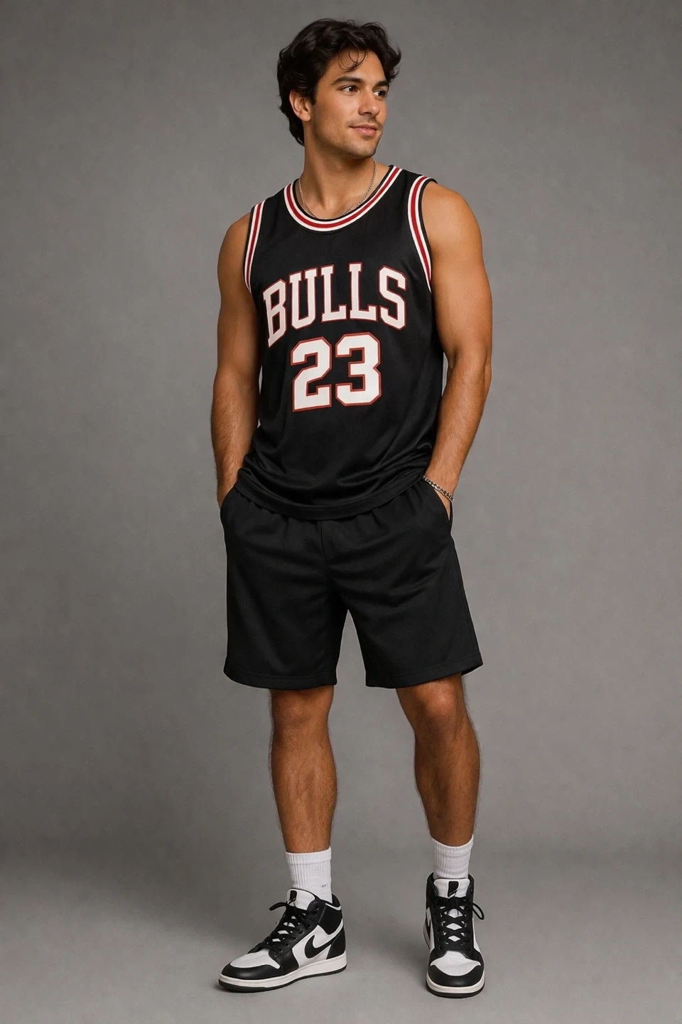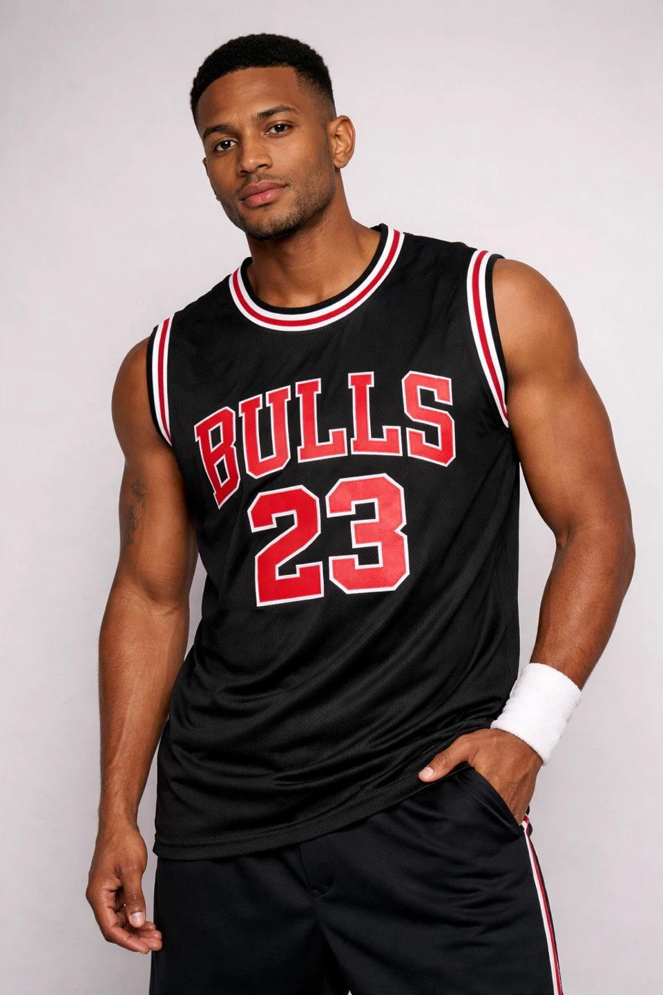 Black Chicago Bulls #23 basketball jersey. Slim Fit Mesh fabric. Ribbed collar and armholes. Great for any basketball fan!