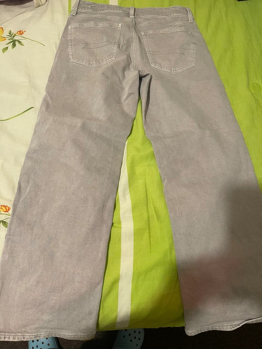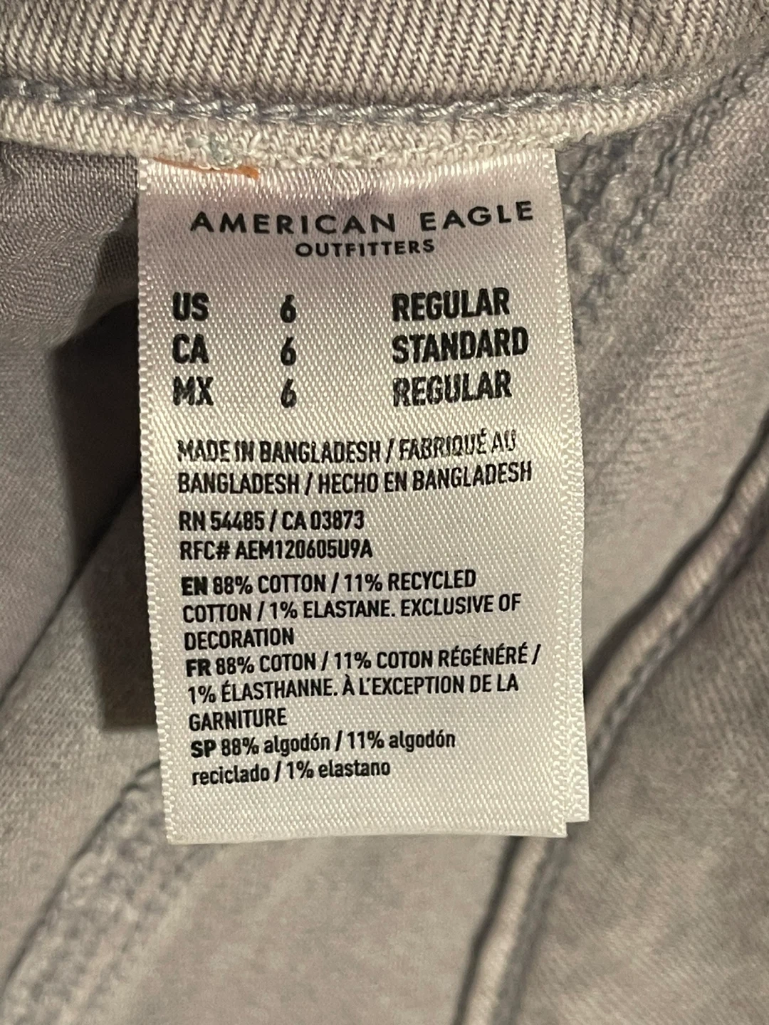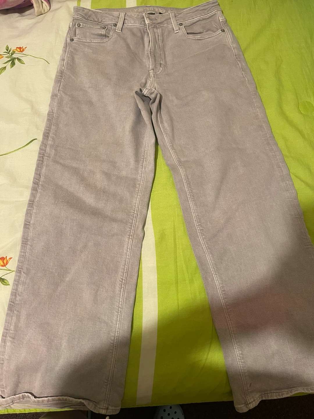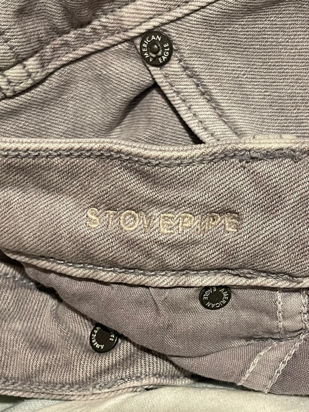 These are American Eagle Outfitters Stovepipe jeans. They're a size 6, regular fit color gray good condition no damage selling because don’t fit any more.
