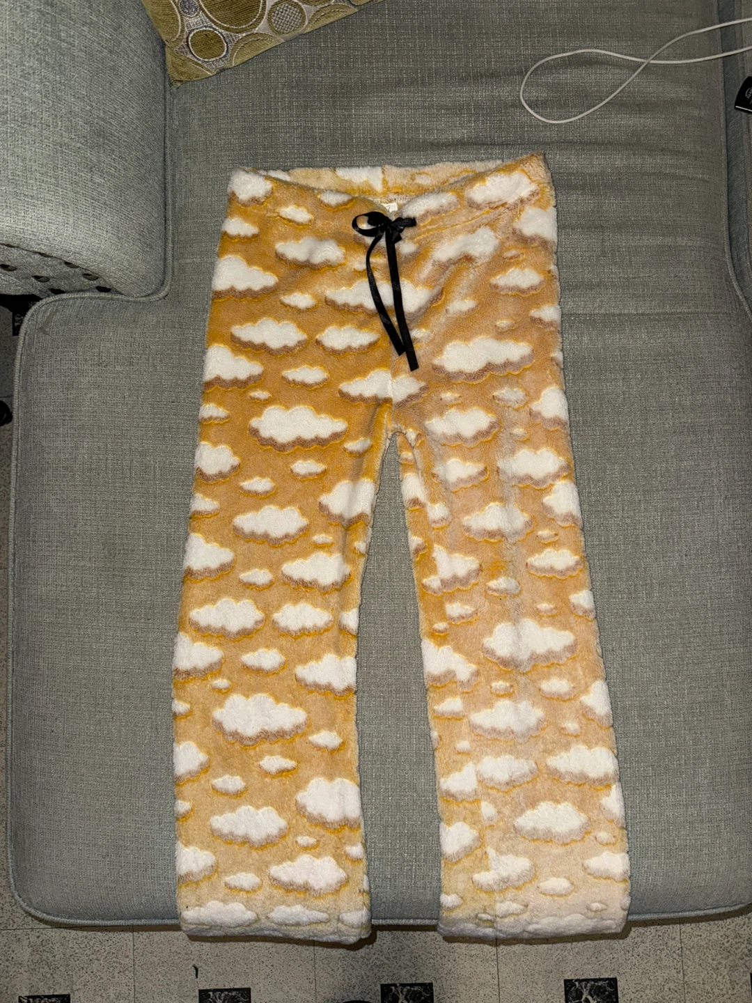 Cozy fleece pajama pants with a cute cloud print. They're a size medium and made of 100% polyester. Perfect for lounging around the house! New no tags. Smoke free home. Cash only.ππ½