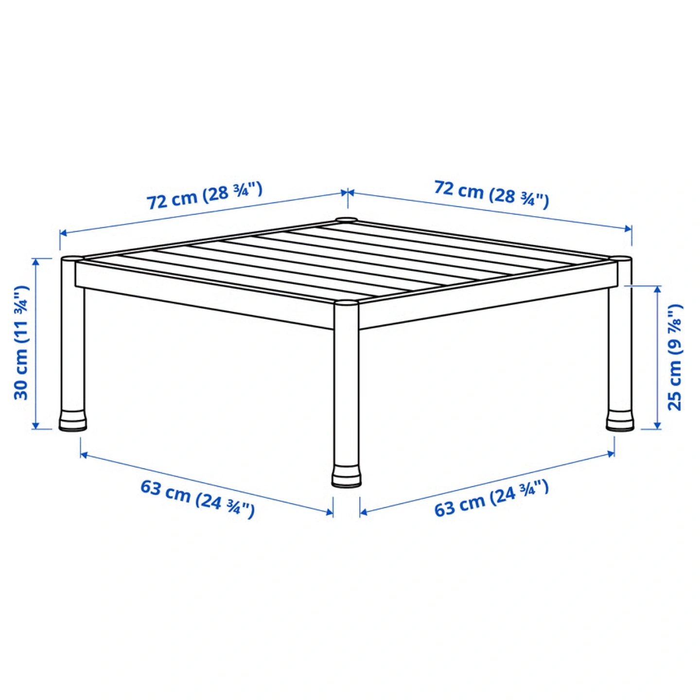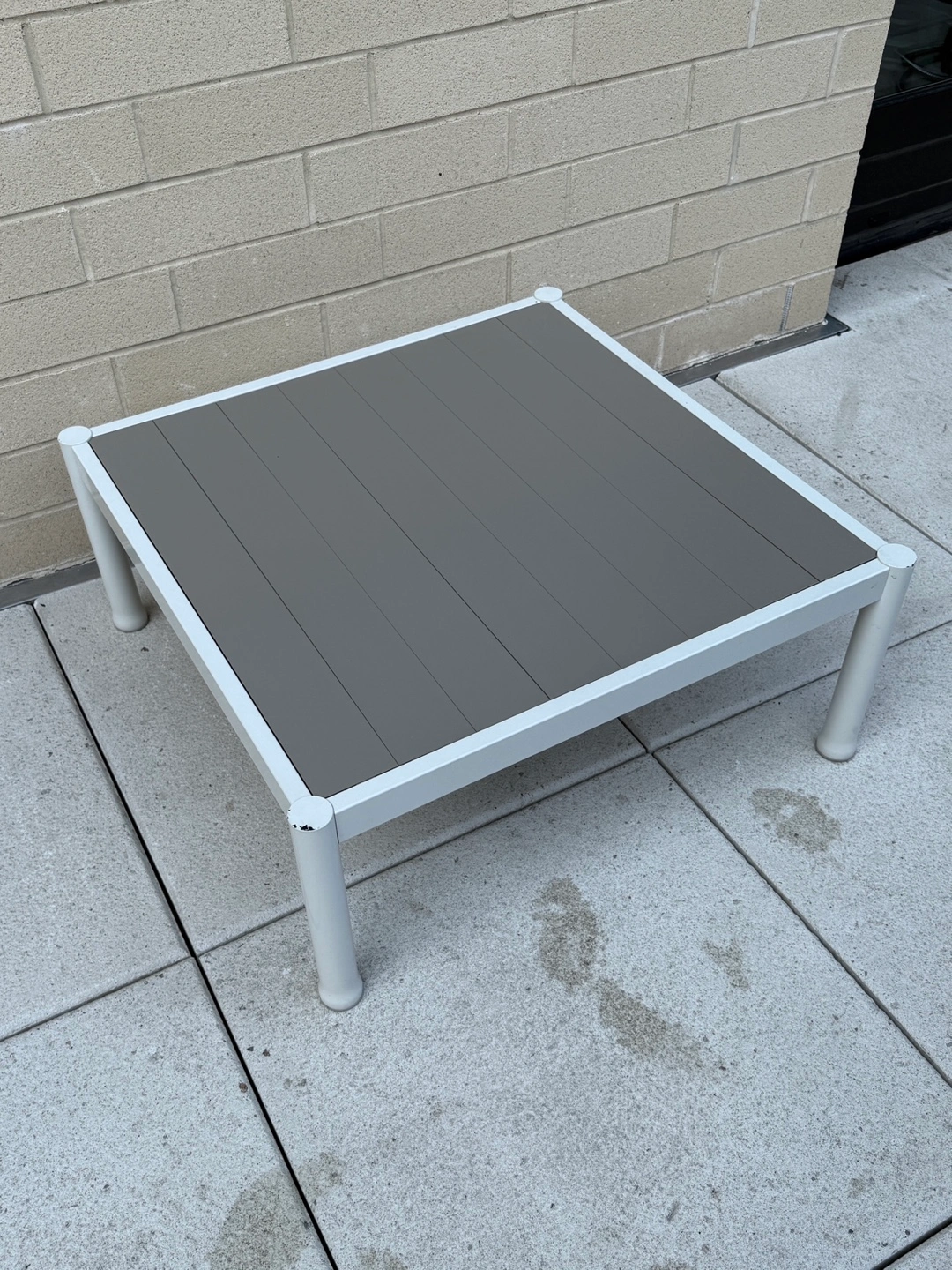 Selling an IKEA outdoor coffee table. It's in used condition, with some wear and tear on one corner. The dimensions are approximately 28 3/4" x 28 3/4" and 11 3/4" high. It's a great addition to any patio or outdoor space! Part of a set. See my other listings.