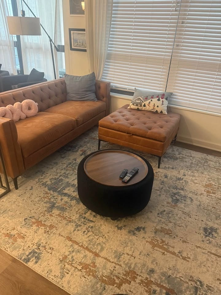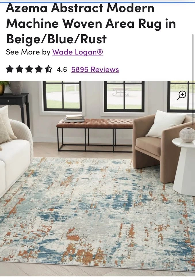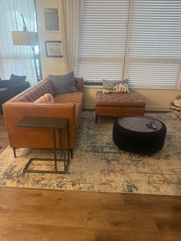 Have had this rug for under 10 months. It’s the perfect size for a living room and looks great with neutral or blue colors! Vacuums like a dream. Pickup in Chicago - River North. Cash, Venmo, or Zelle only please.