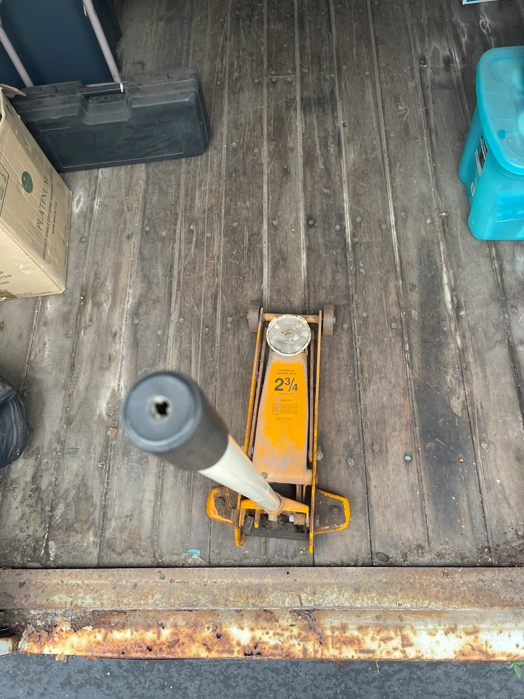 Selling a hydraulic garage jack with a 2 3/4 ton capacity. It's designed for lifting purposes only after fittings. Always use safety stands to support the load before making repairs. Do not overload beyond rated capacity