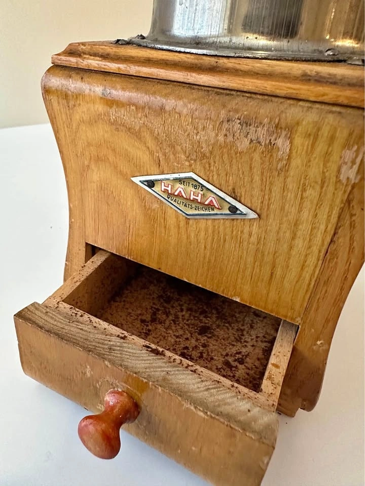 For sale is a stunning, fully functional piece of history. This HAHA (H.A. Hammelmann) manual burr grinder dates back to the post-war era and still works like a charm.