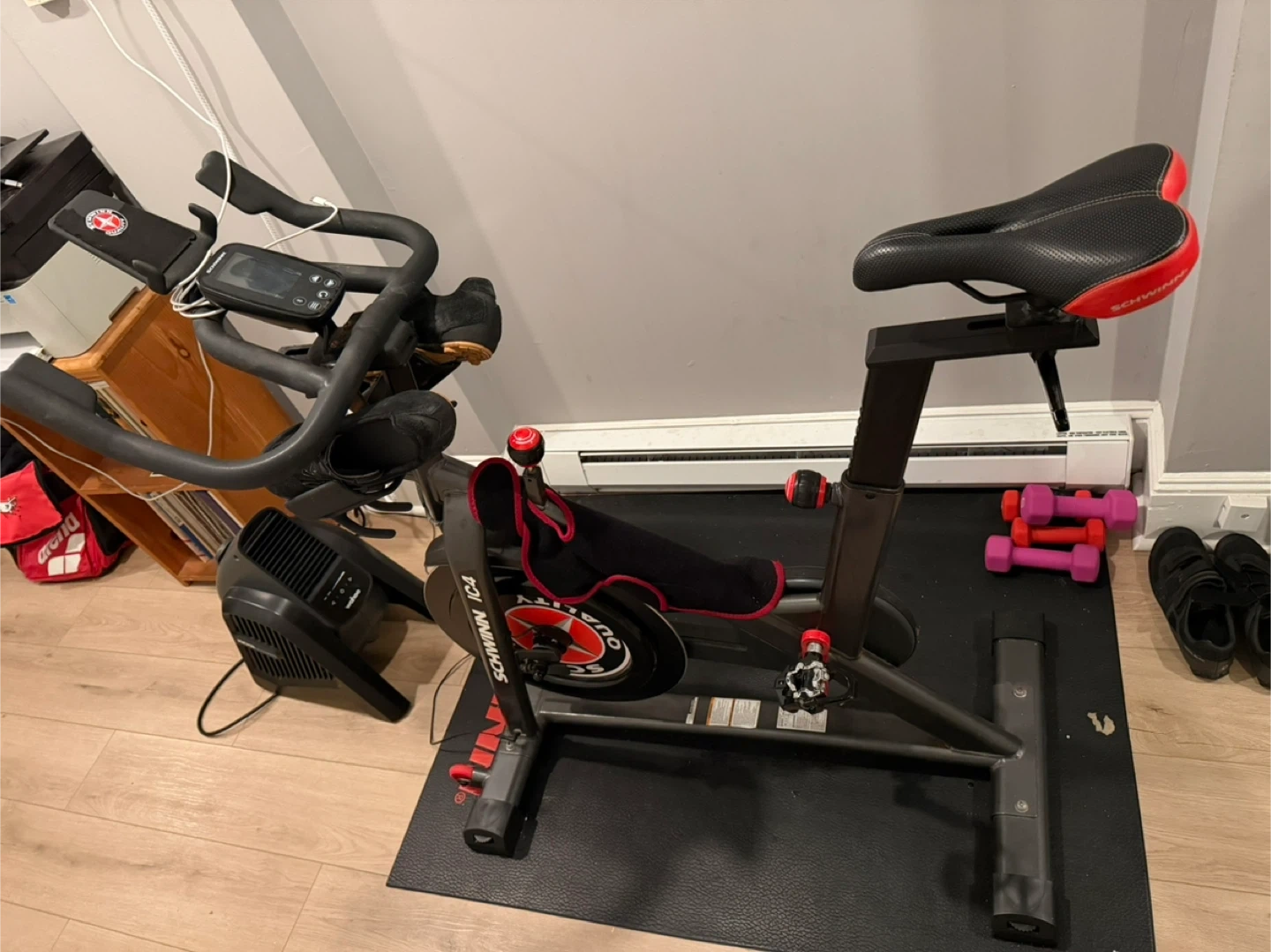 Selling a Schwinn IC4 indoor exercise bike. It's in used condition (4 years old), but still works great for getting a good workout in at home. Perfect for anyone looking to stay active!