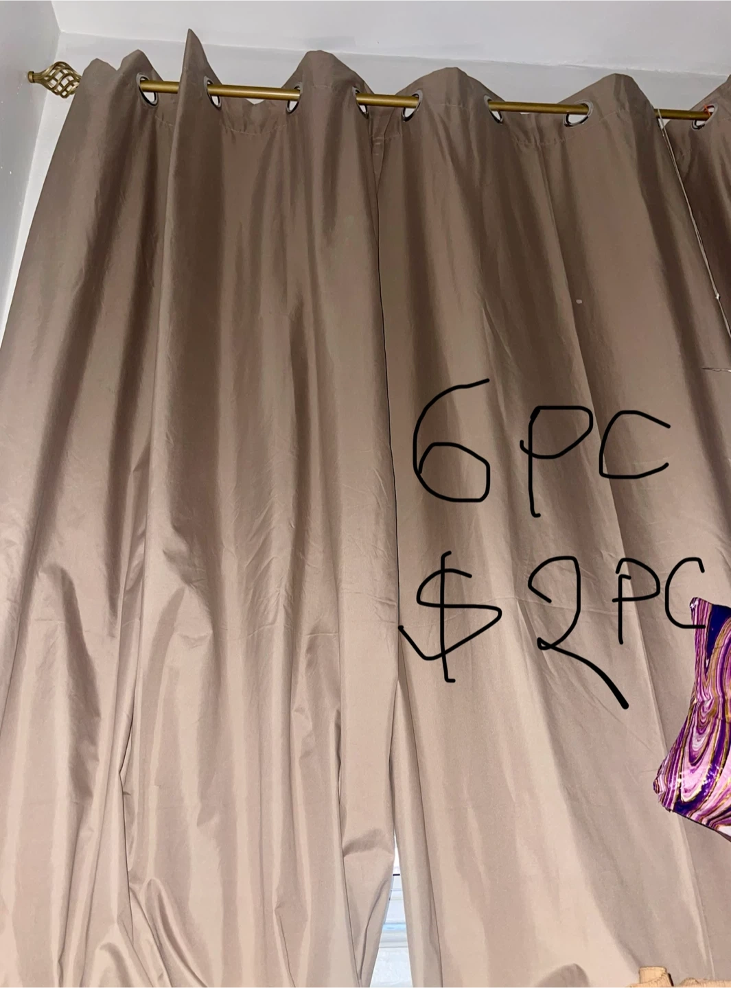 Brown Grommet Curtain Set - 2 Panels 3set(6pc )