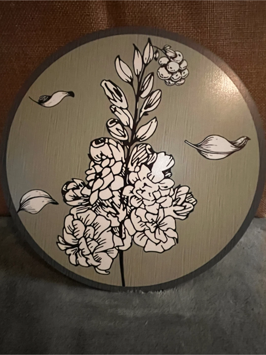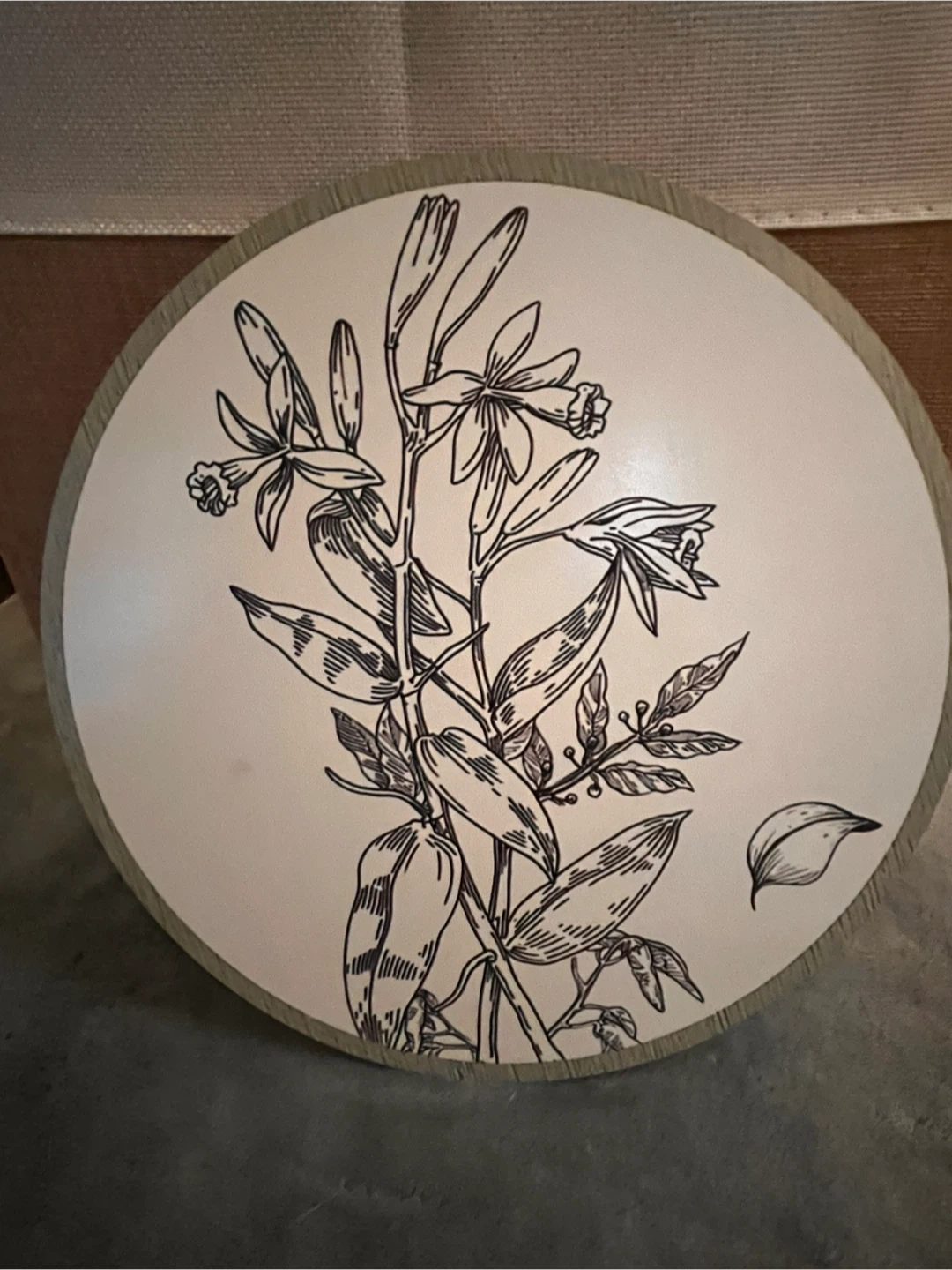 Selling a set of six decorative wood wall plaques. Each plaque features a different botanical design in black and white on a neutral background. 3 - large (10”); 3 - medium (8”). Metal hooks included. These are perfect for adding a touch of nature to your home decor!