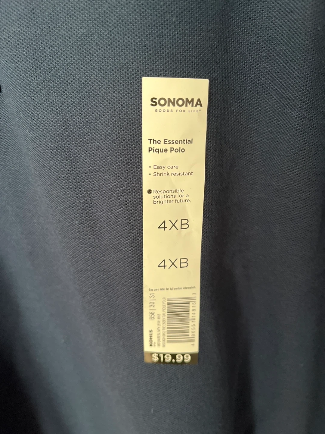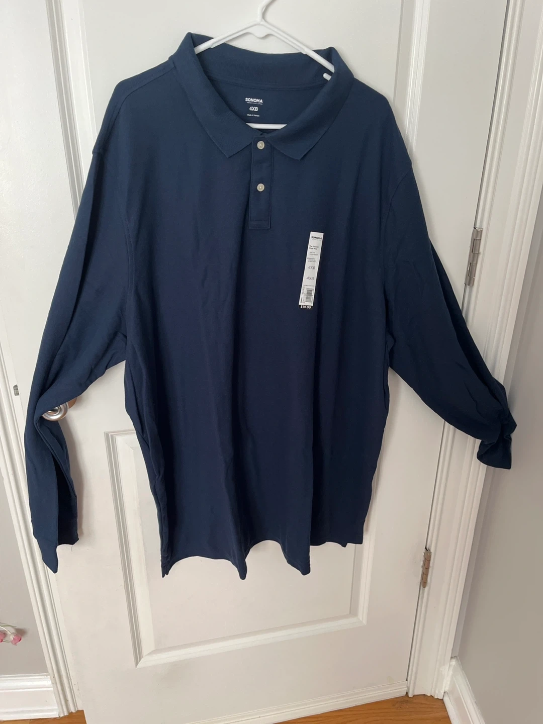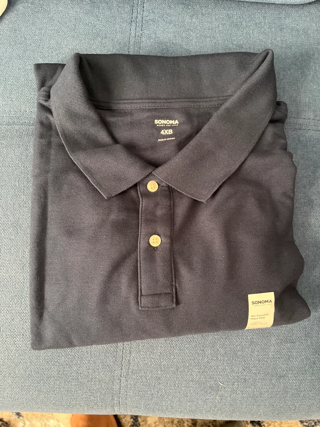 (NAVY BLUE)This is a Sonoma Goods For Life polo shirt in size 4XB. It's the Essential Pique Polo, which is easy care and shrink resistant. Originally bought for $19.99