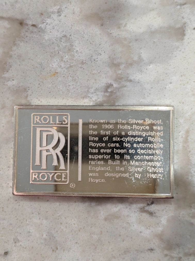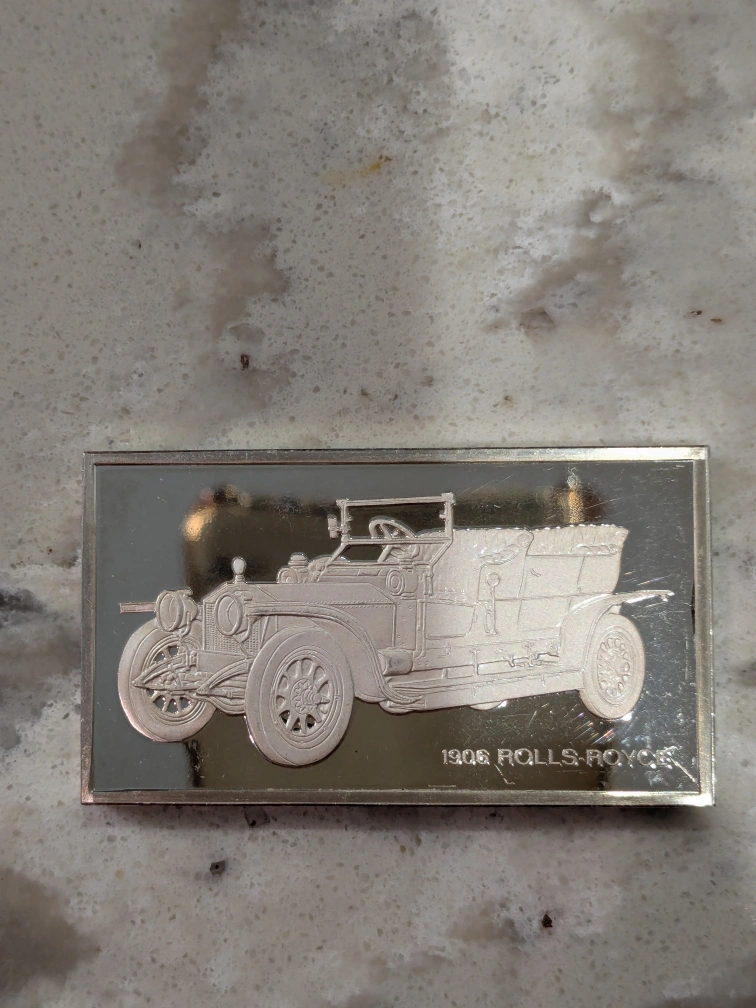 1906 Rolls Royce Silver Ghost centennial car collection 1000 grain Sterling Franklin Mint Art Bar, 2.29; Ounces 925 Silver is iquivaalent to approximately 2.11 ounces of.9999 fine silver.