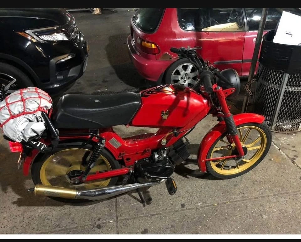 2004 Tomos moped. The moped turns on, but the mechanic may have installed something incorrectly in the engine, as the crank pedal now spins backwards. The engine is new. The bike can go about 45mph. Come check it out.