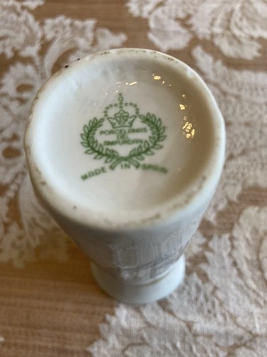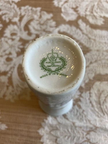 This beautiful vase is a stunning addition to any collection. Made in Spain, it features delicate flowers in white porcelain. The craftsmanship is apparent in the intricate details and beautiful color. The vase is perfect for displaying flowers or standing alone as a decorative piece. It is a must-have for any collector of fine porcelain. 4 1/2 in tall.