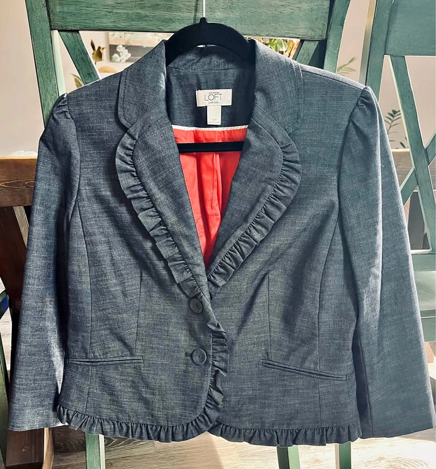 1 / 31 / 3Buy & SellAnne Taylor Loft, ruffled edging jacketAnne Taylor Loft, ruffled edging jacket$10Adorable Anne Taylor jacket with ruffled edging.WHERE TO MEETCheck LocationView MapSELLERTammyHomer Glen100 reviews0 chats·0 favorites·1 viewsSEND CHAT TO SELLERHi Tammy! I’m interested in your listing.Hi Tammy! I’m interested in your listing.Get the Karrot app to chatSign In to chat