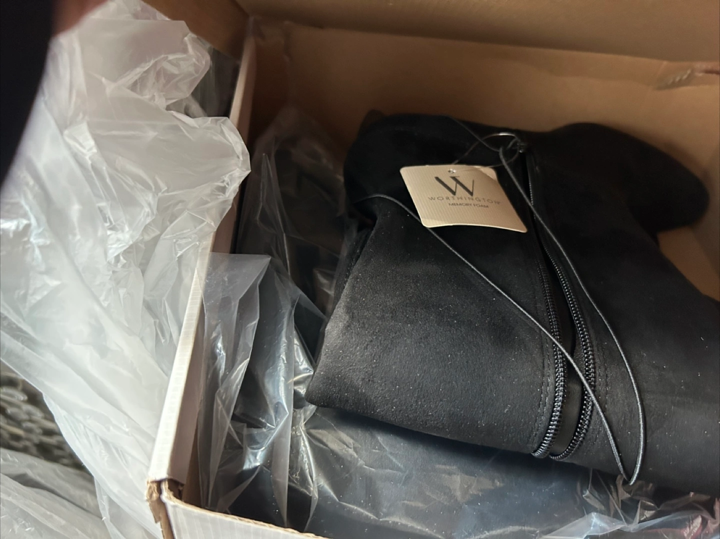 Selling a pair of Worthington brand. VALTO black midsized length knee high boots. Size 9 W. Insoles are of memory foam. They come in the original box with original tags. Retails for $95