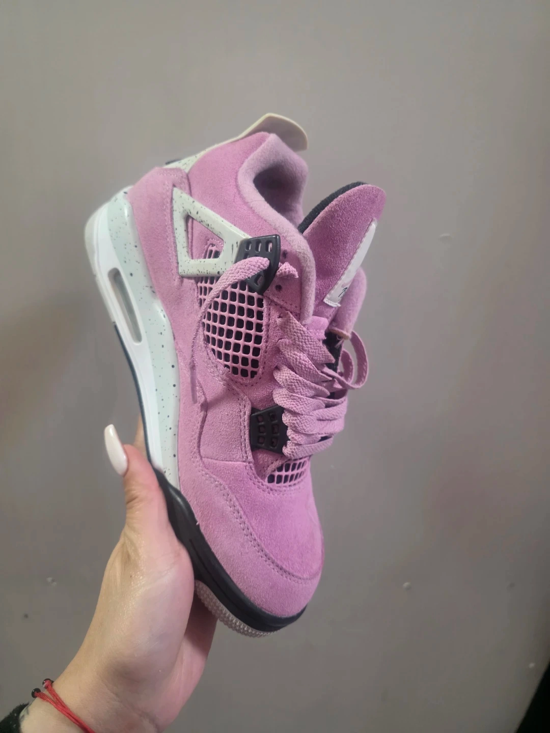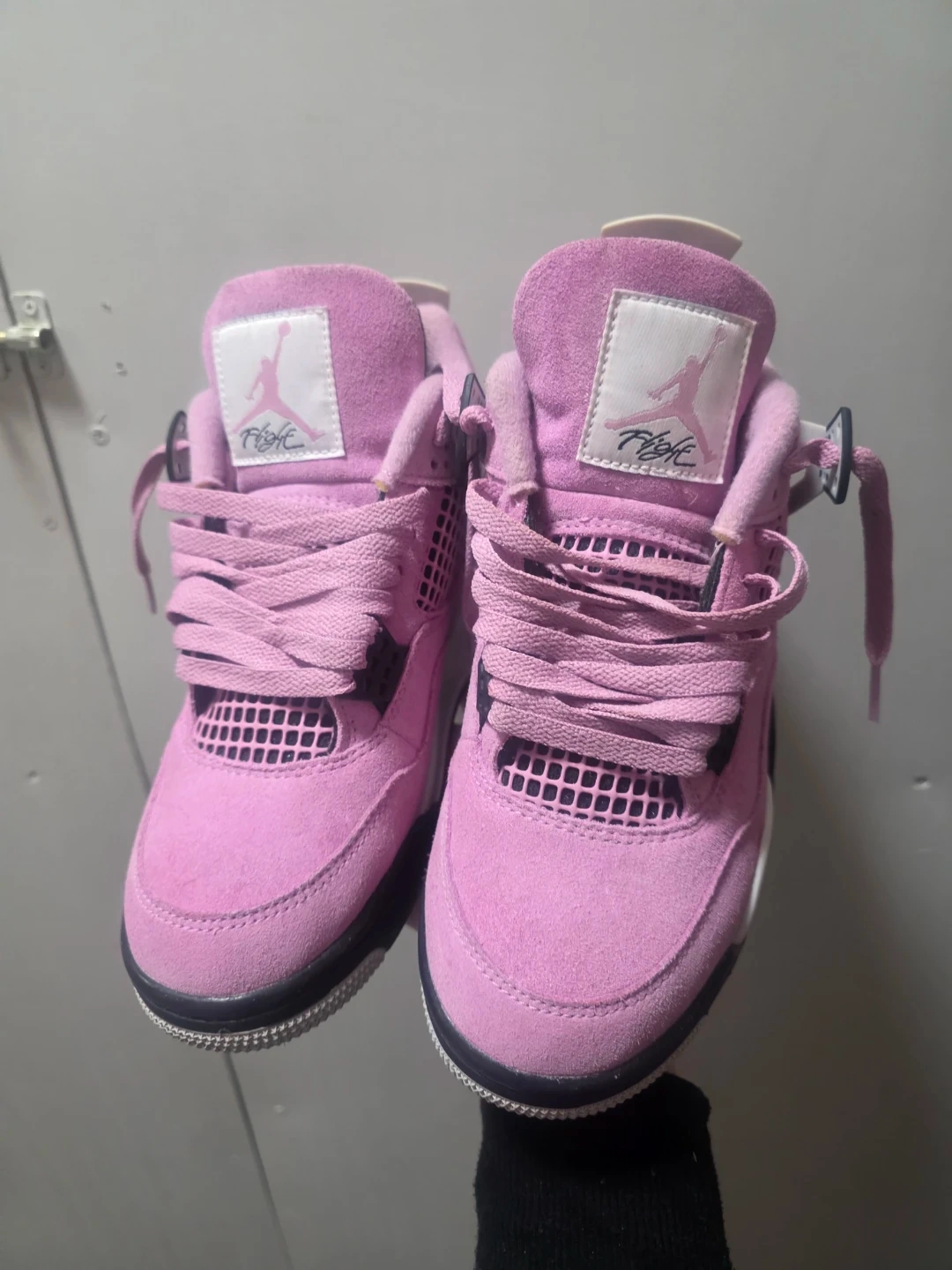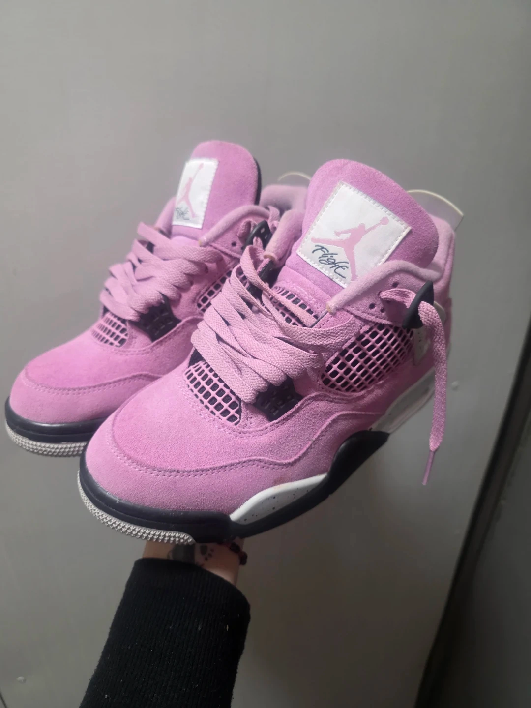 Selling a pair of Jordan 4 Retro in pink. These shoes are in exelent condition and ready for a new owner! They feature the classic Jordan design with a stylish pink colorway. Perfect for adding a pop of color to your outfit