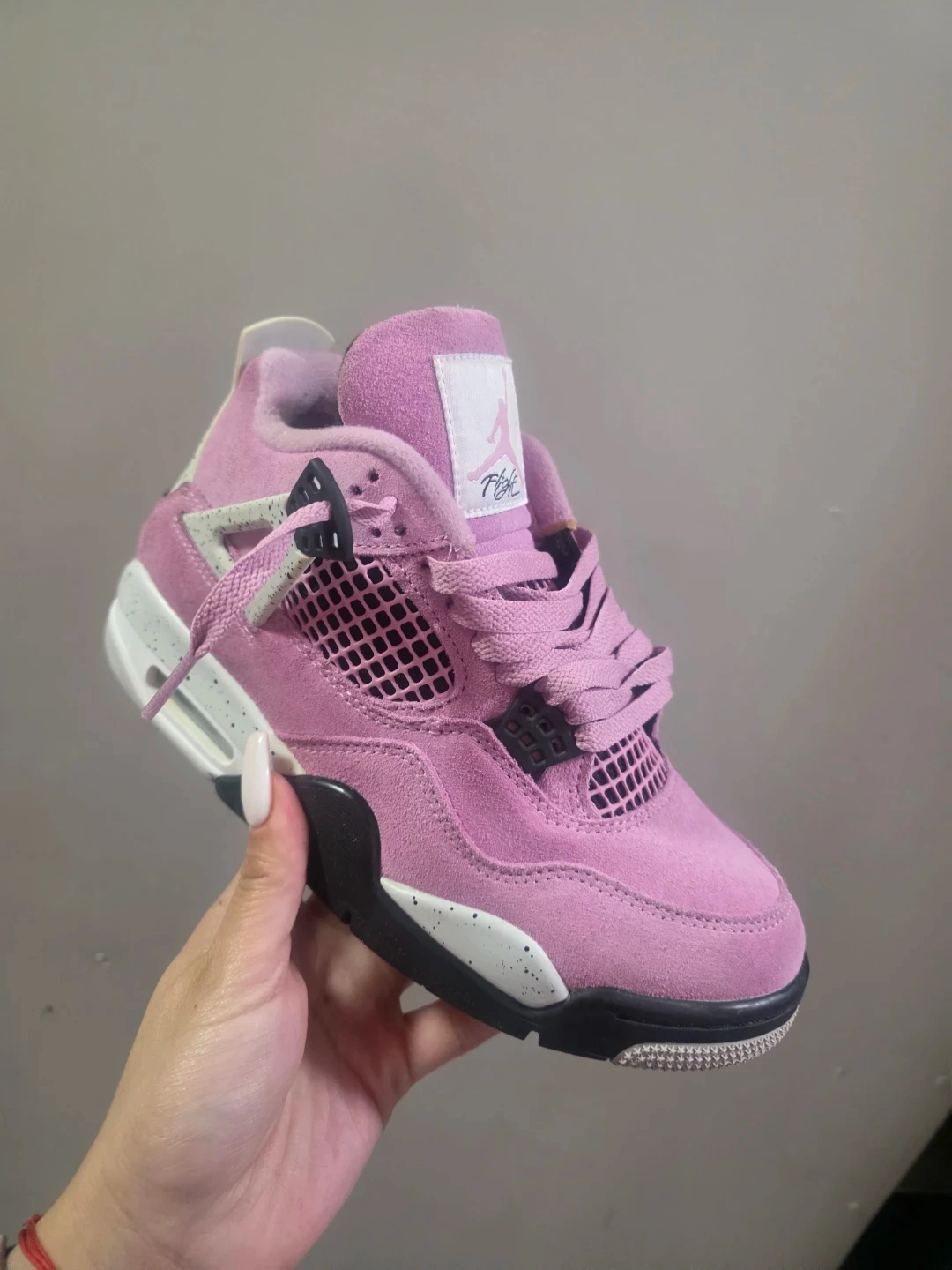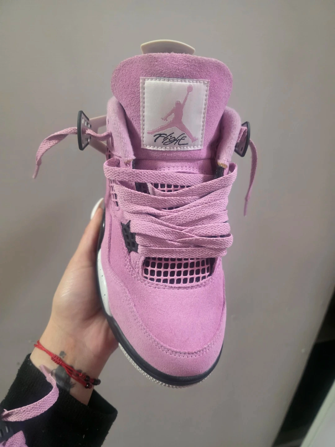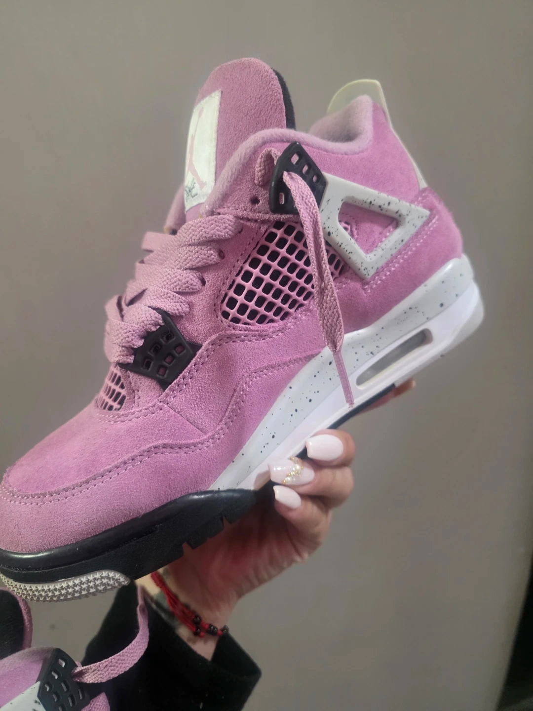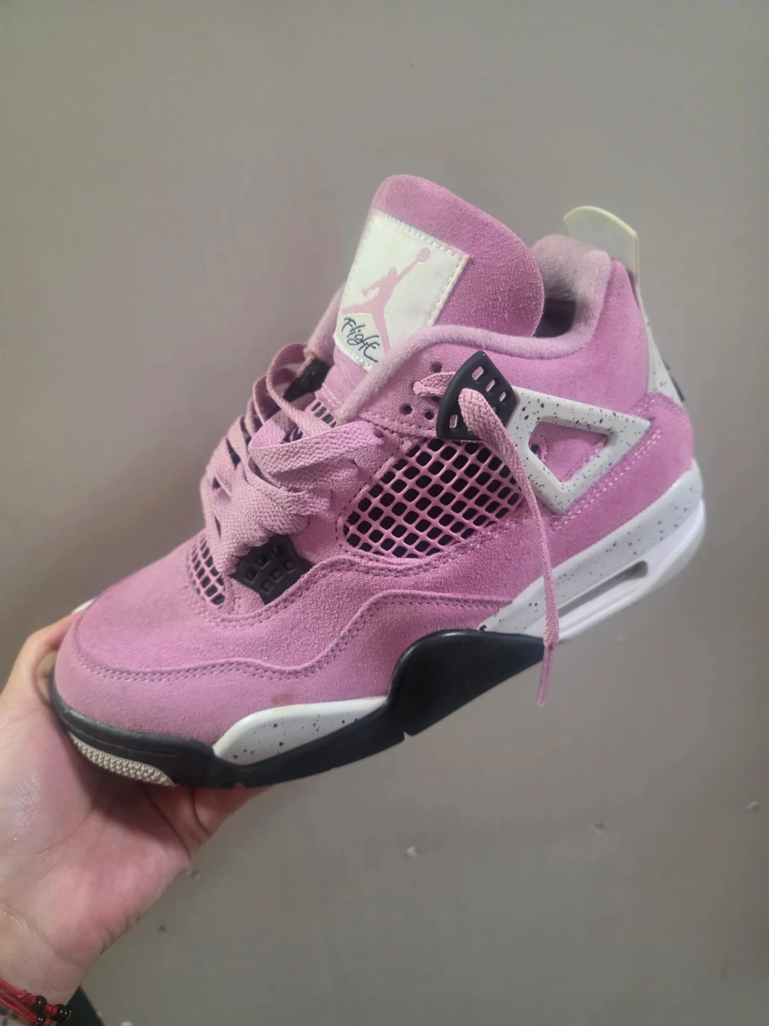 Selling a pair of Jordan 4 Retro in pink. These shoes are in exelent condition and ready for a new owner! They feature the classic Jordan design with a stylish pink colorway. Perfect for adding a pop of color to your outfit