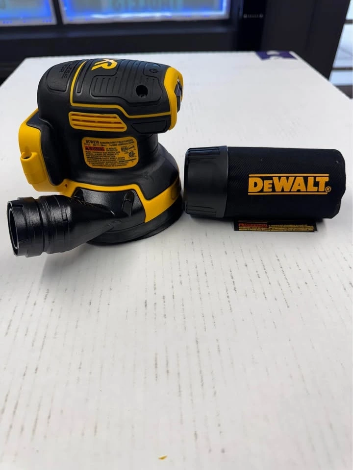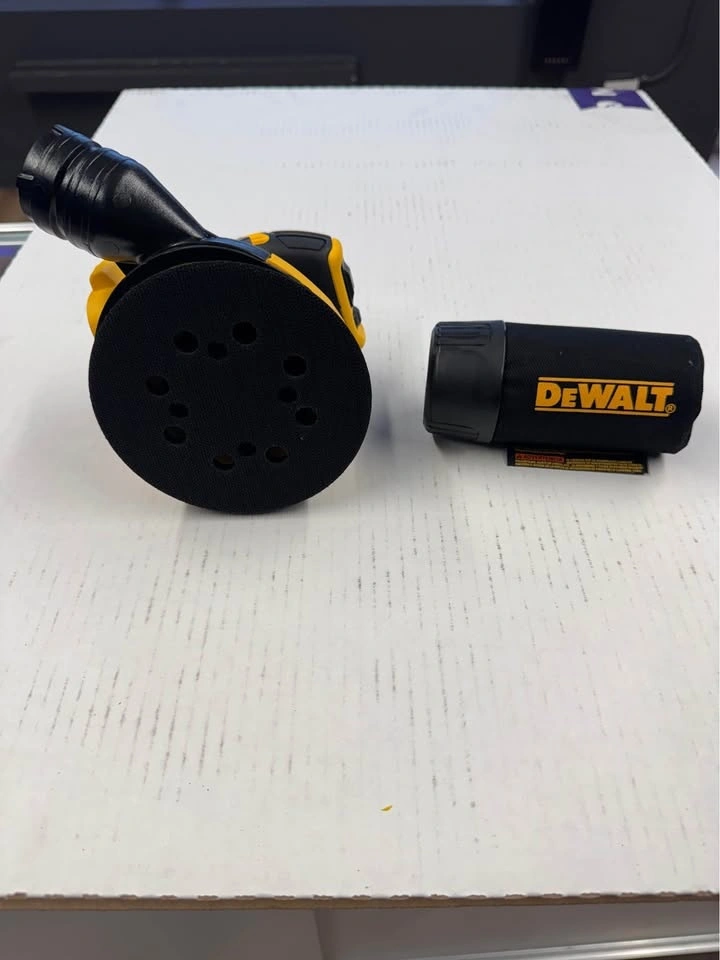 This DEWALT 20V MAX XR Brushless 5 in. Cordless Random Orbital Sander offers great power and runtime. It features a variable-speed dial (8,000 - 12,000 OPM) for precise control on various projects. The one-handed locking dust bag attaches securely, or you can connect directly to DWV010 or DWV012 dust collectors. The rubber overmold grip ensures comfortable use. It has a replaceable 8-hole hook-and-loop sanding pad for easy paper changes. The brushless motor provides efficiency and runtime. Its low profile design allows you to get close to the work surface. The dust-sealed switch protects against dust ingestion for a longer life. Feel free to message if you have any questions!