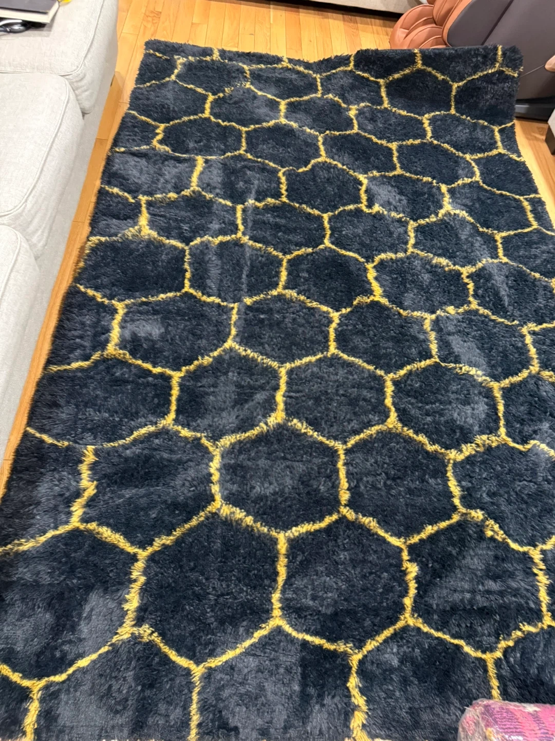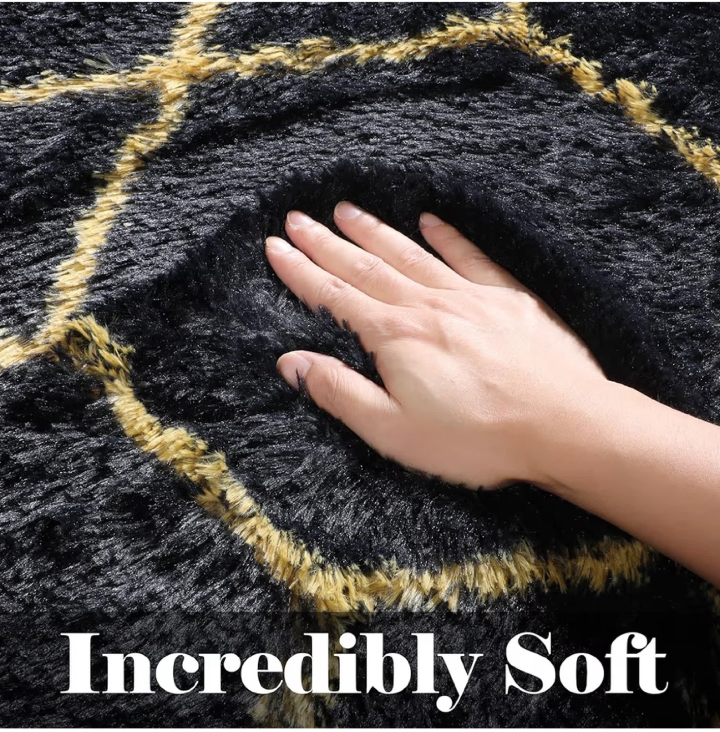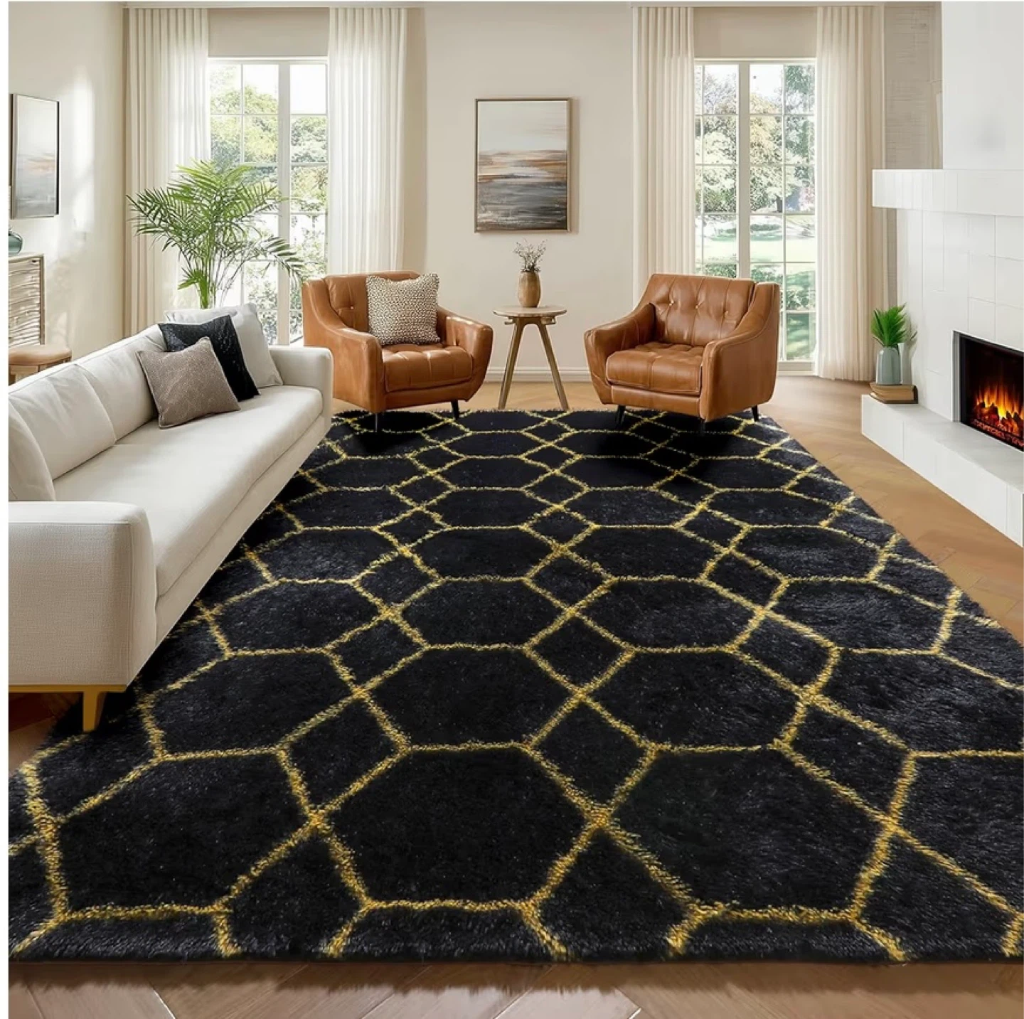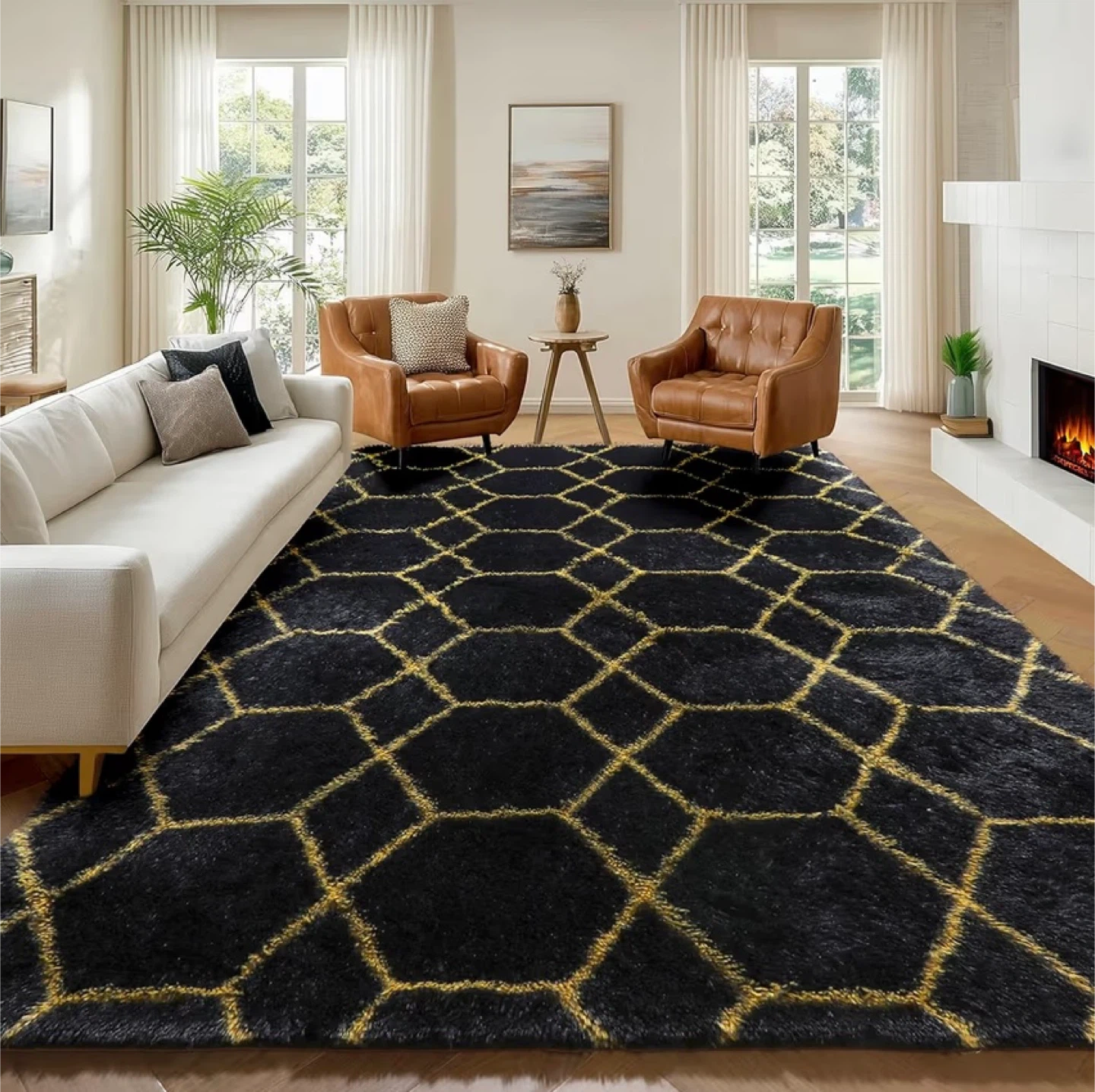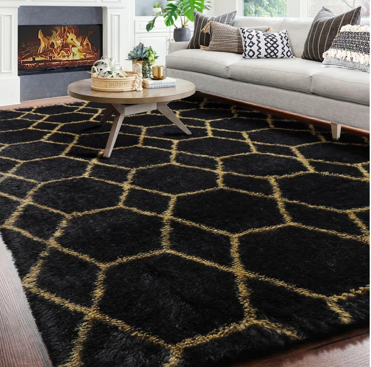 Plush Hexagon Pattern Area Rug - Black & Gold