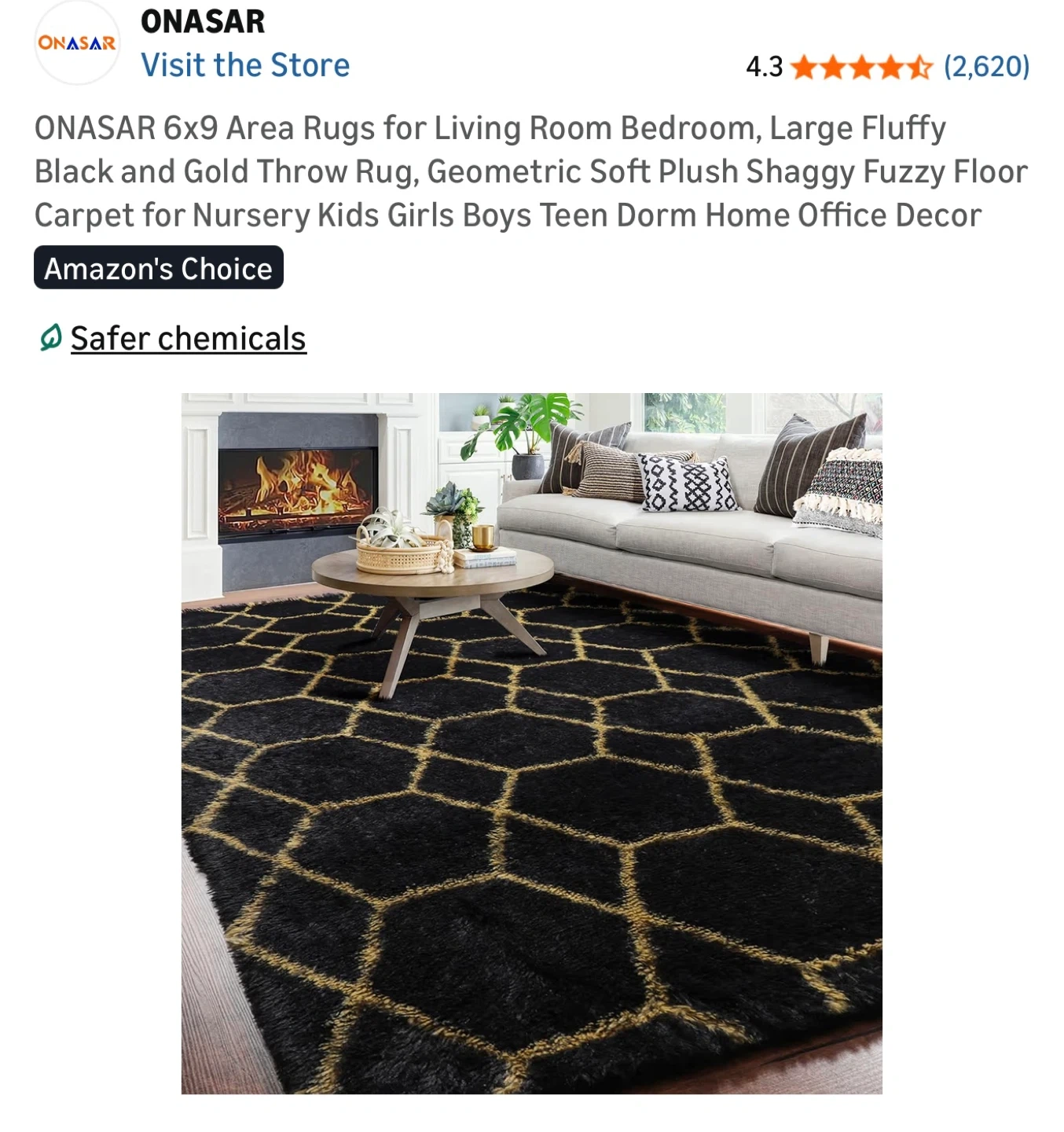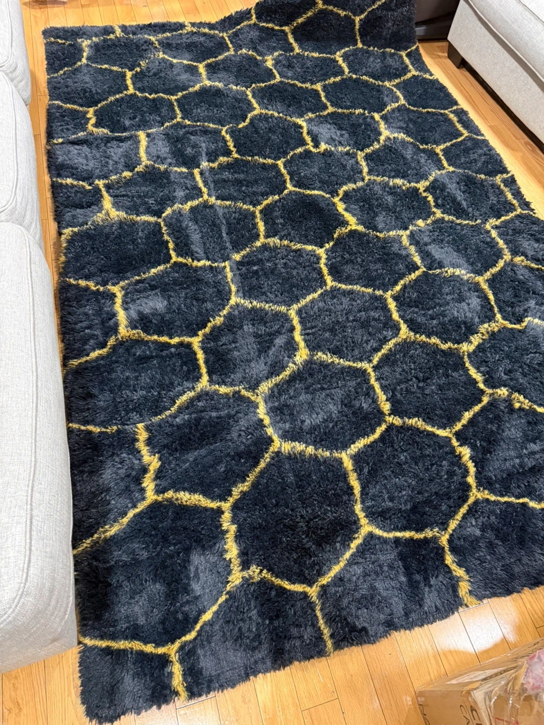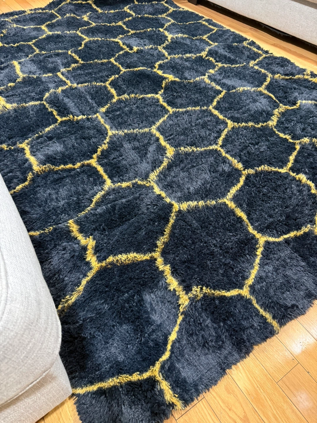 Plush Hexagon Pattern Area Rug - Black & Gold