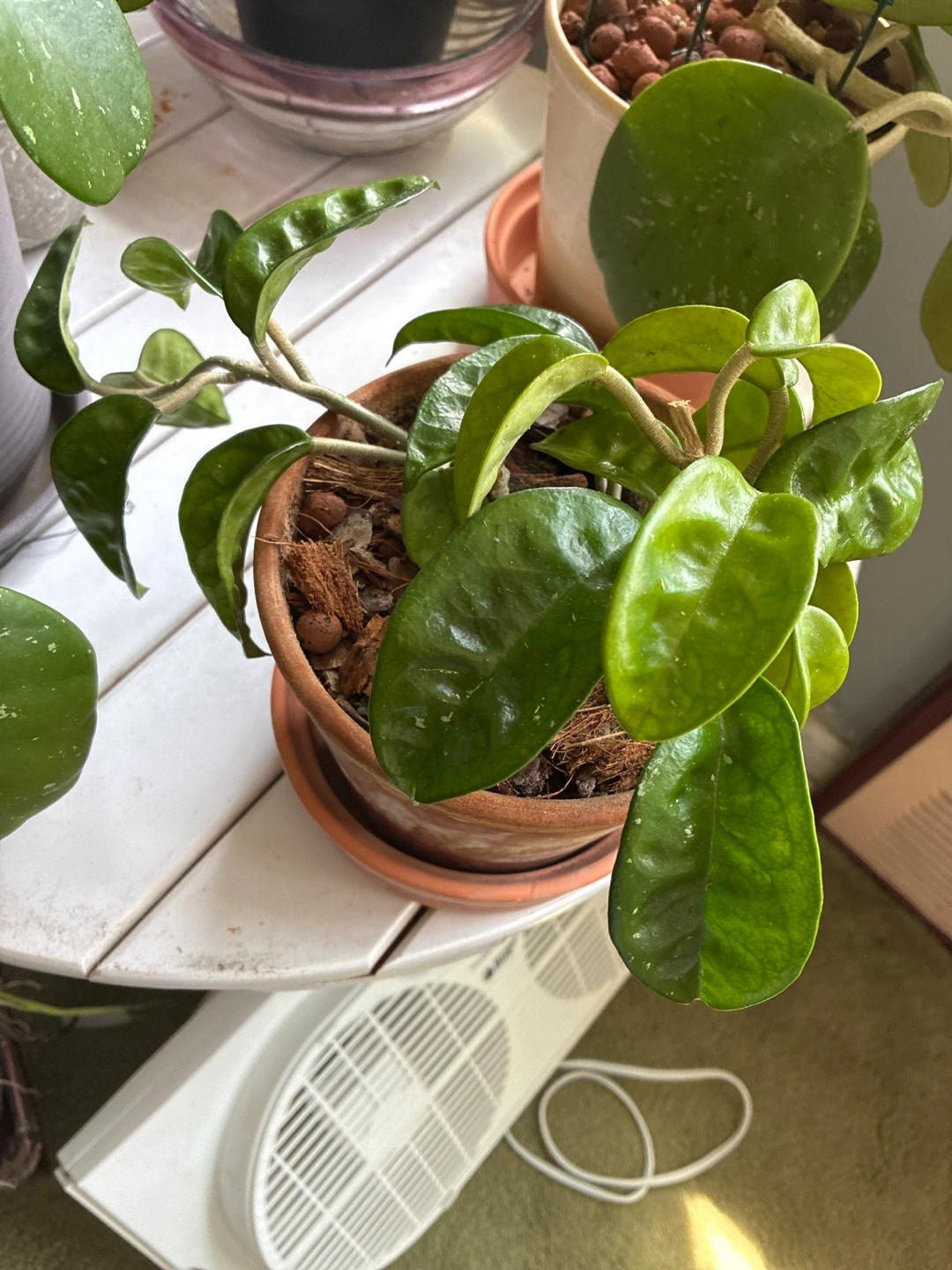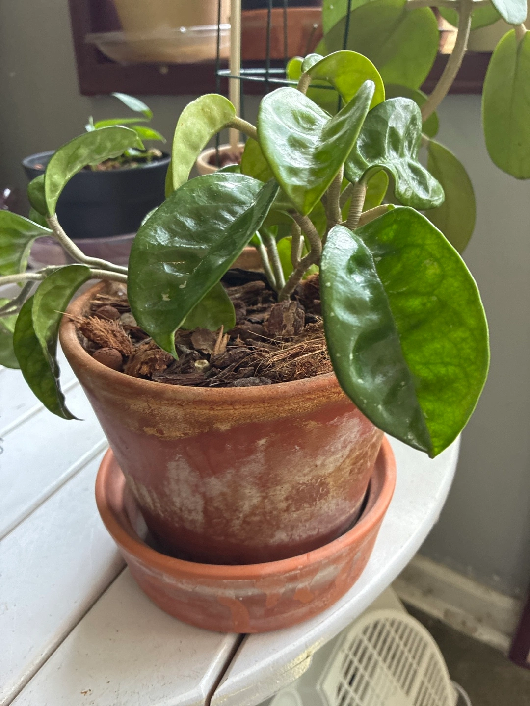 A lovely hoya plant in a terracotta pot, ready to brighten up your space! It's a healthy plant with vibrant green leaves and is easy to care for