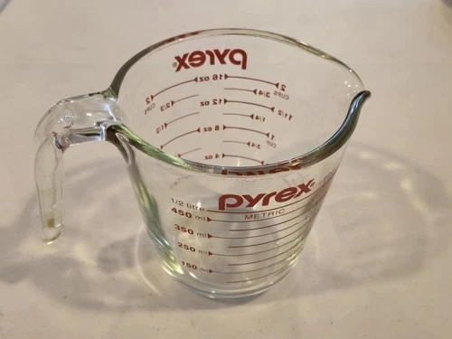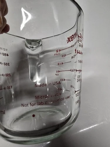 This clear, durable Pyrex Prepware 2 cup liquid measuring cup is made in the United States. It's easy to clean and dishwasher safe. A reliable and versatile option for everyday kitchen use.