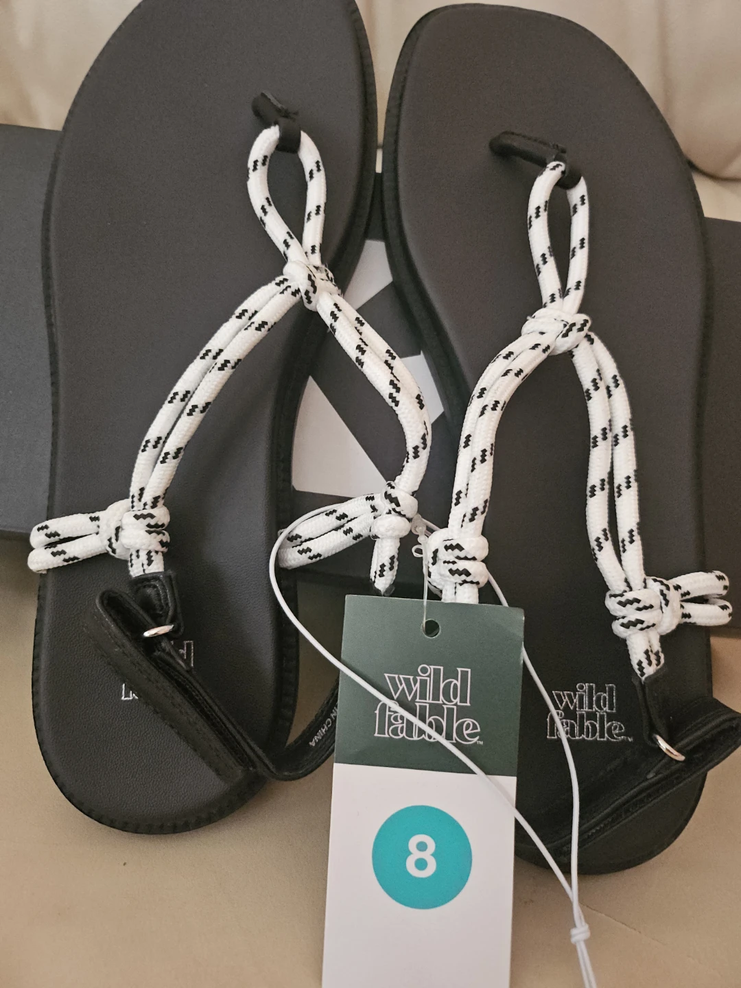 These Wild Fable black flip-flop sandals feature a stylish rope strap design. Size 8. Perfect for casual summer wear!