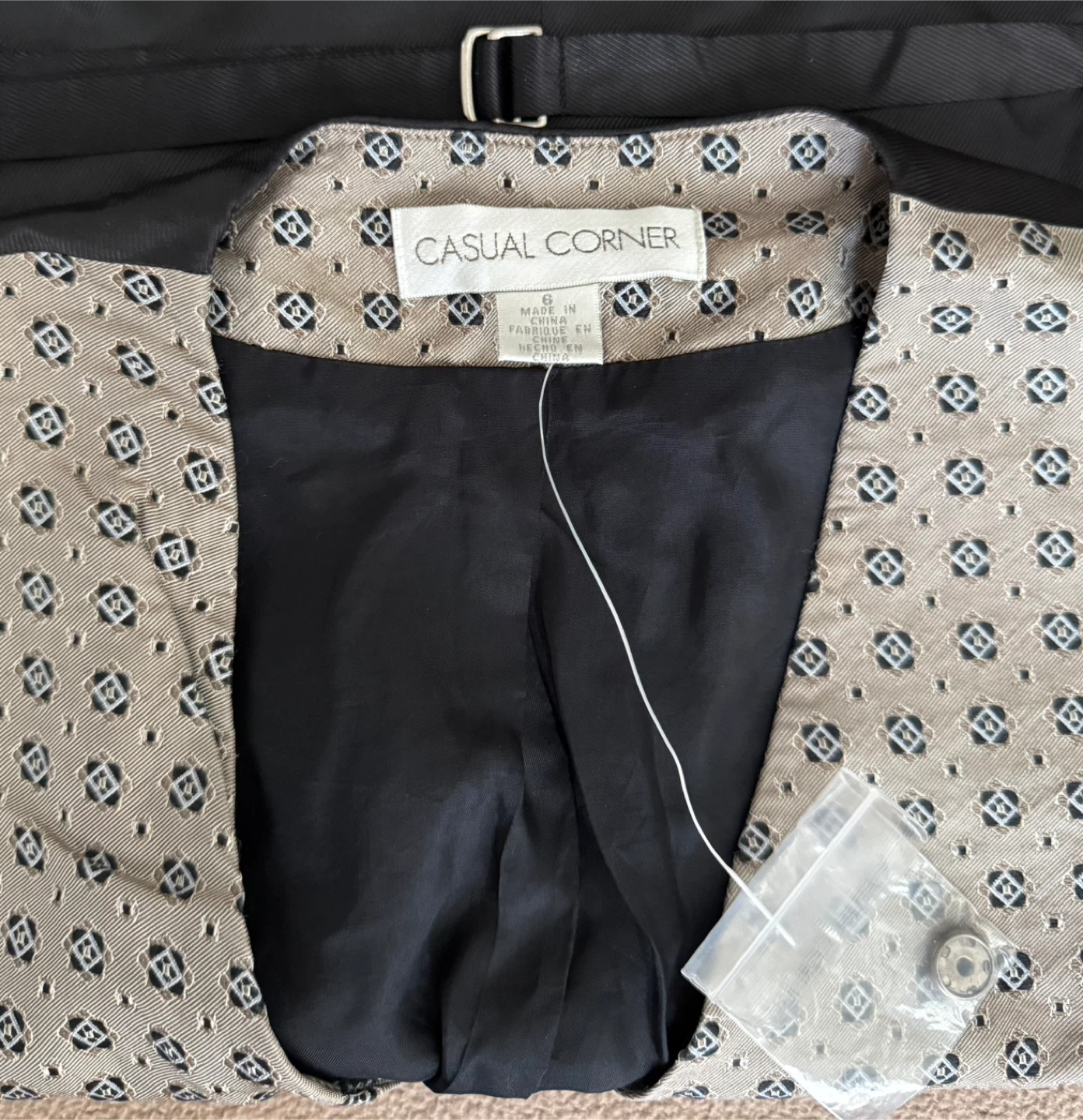 Selling a Casual Corner vest in size 6. It features a unique pattern and a black lining. Perfect for adding a touch of style to any outfit!