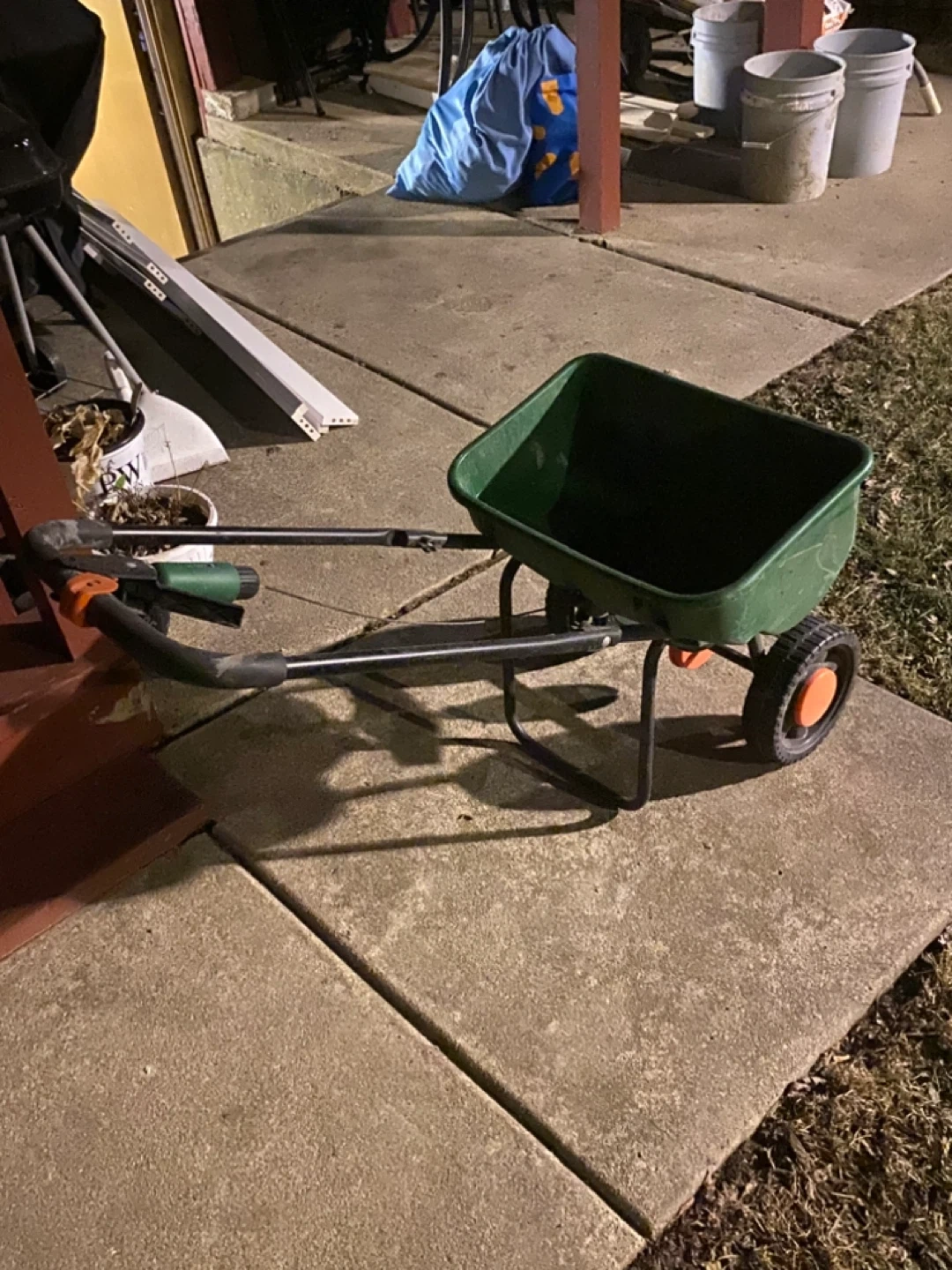This is a Scotts SpeedyGreen 3000 broadcast spreader. It's designed for lawn care applications. Spreader hopper capacity is 10,000 sq ft coverage.