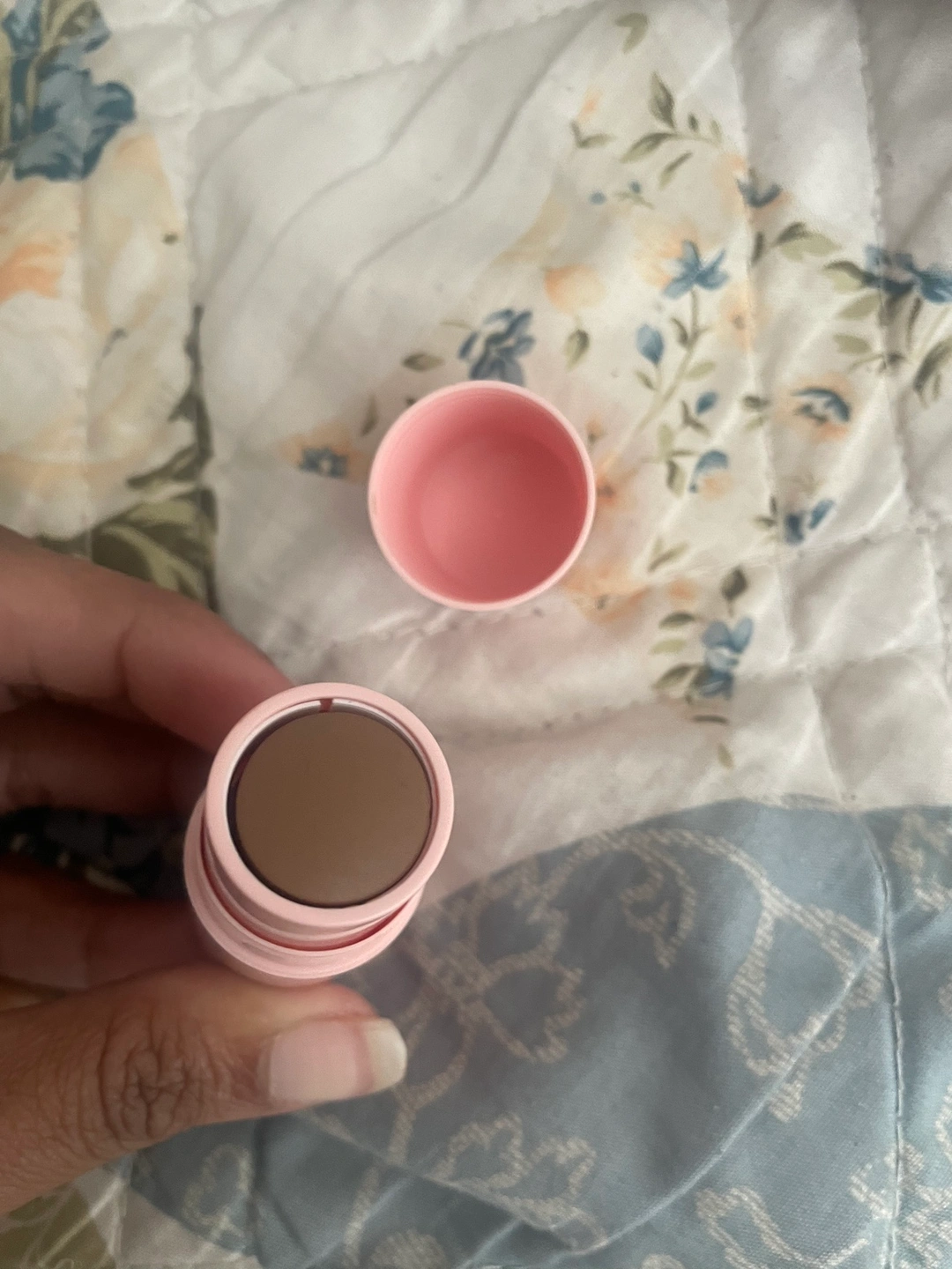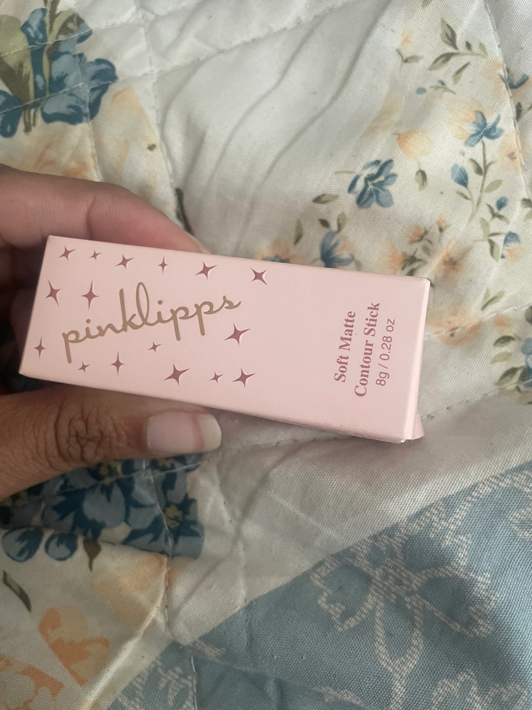 This is a contour stick from the brand Pinklippers. It is a soft matte formula that comes in a brown shade. The contour stick is in a pink tube with the brand name on it.