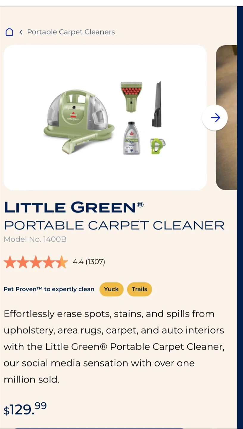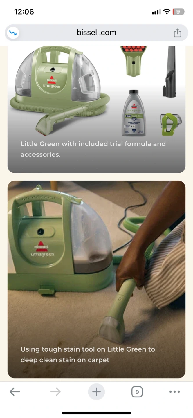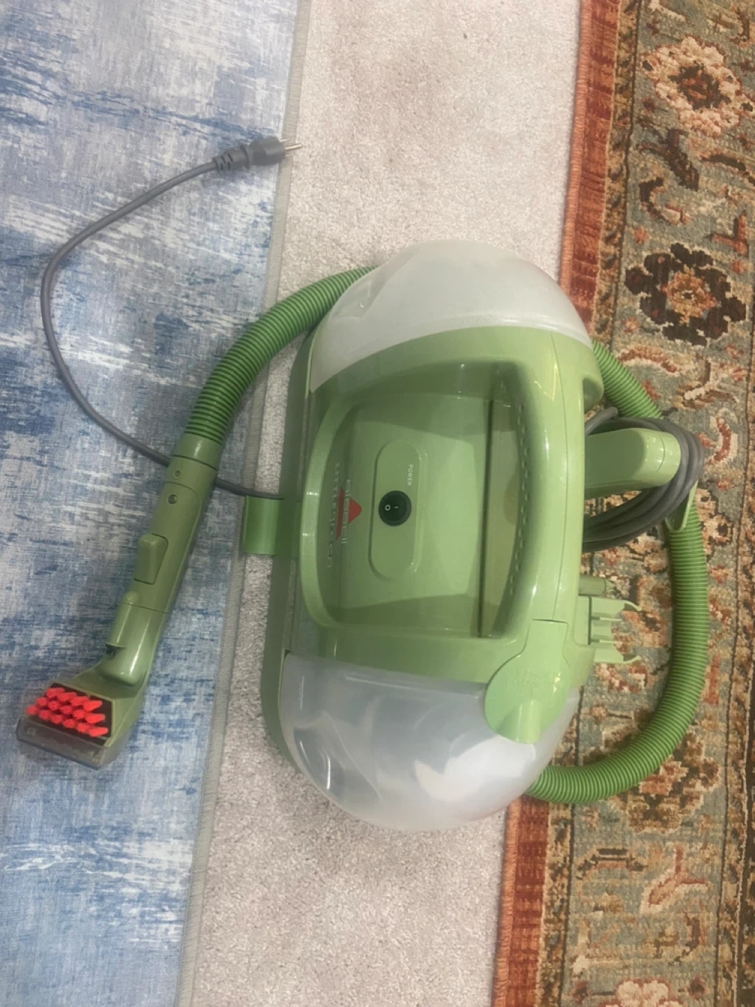 Selling a Bissell Little Green portable carpet cleaner. It's great for cleaning up small spills and stains on carpets and upholstery. It comes with the tough stain tool for deep cleaning on carpets.