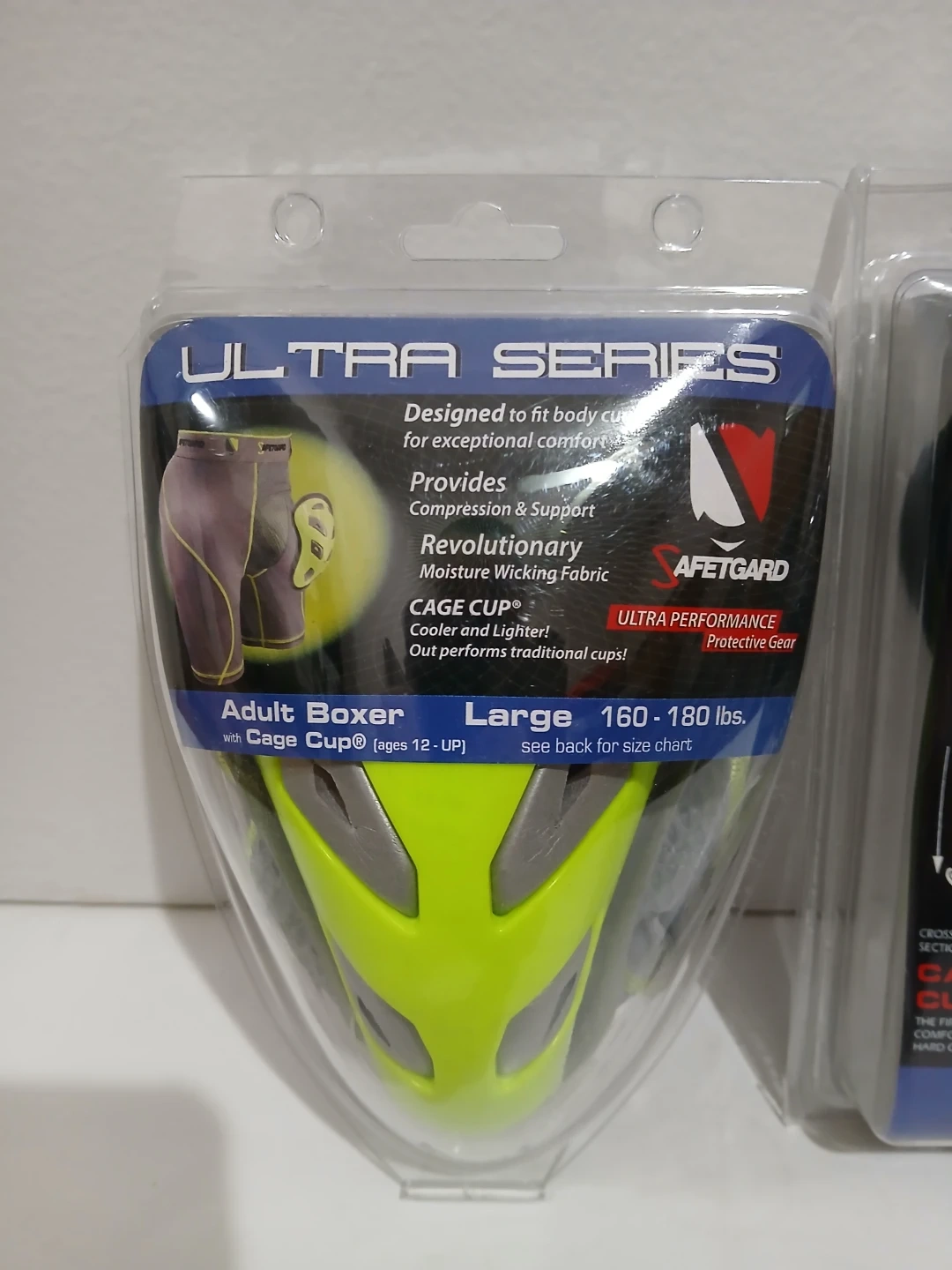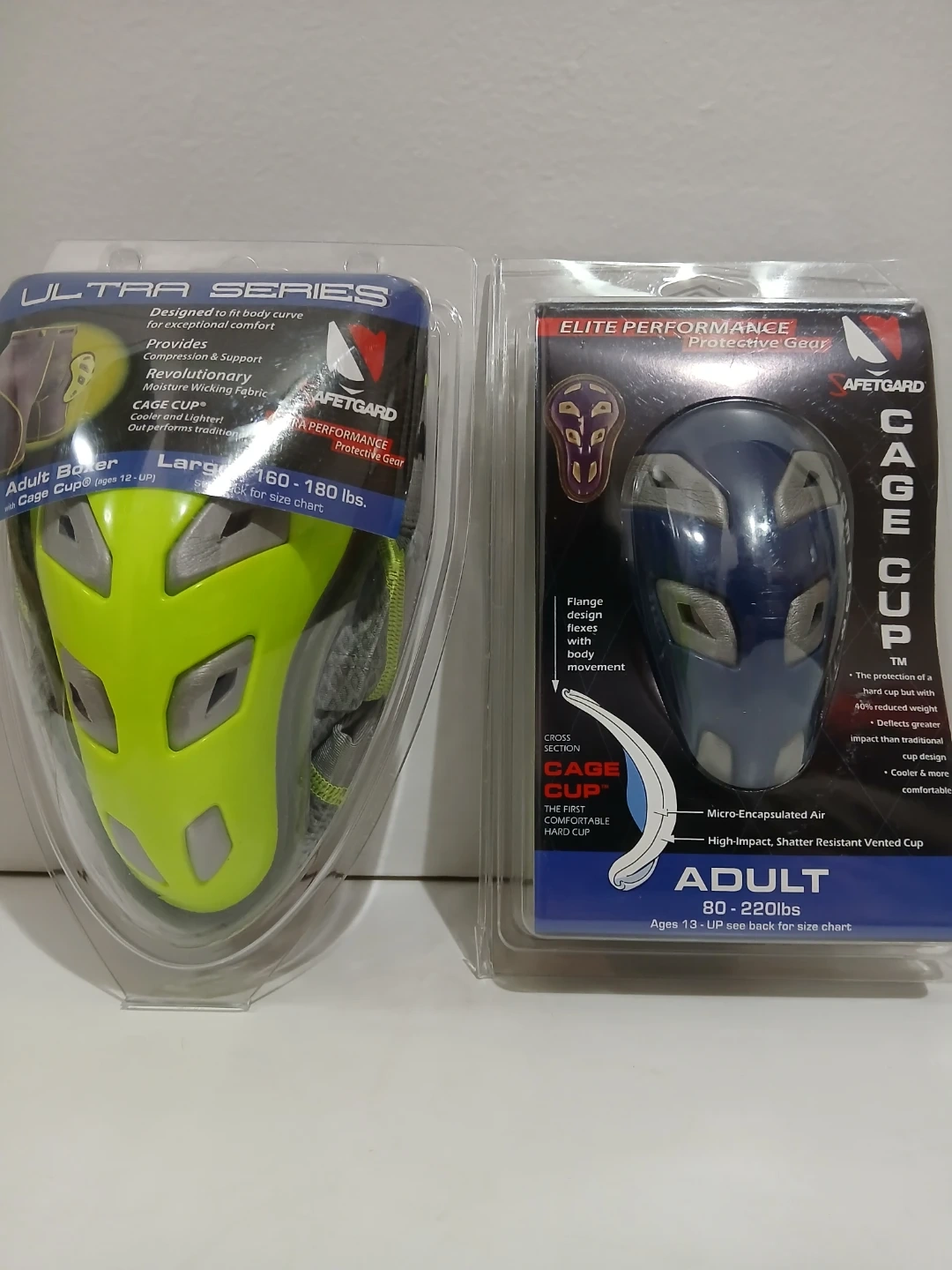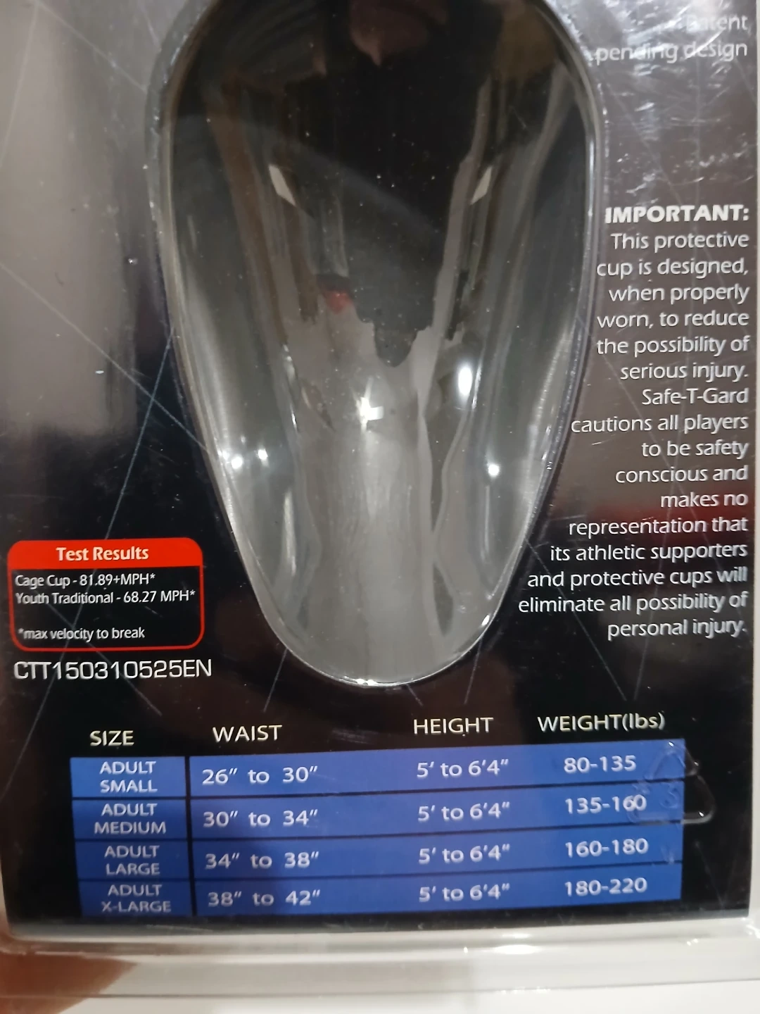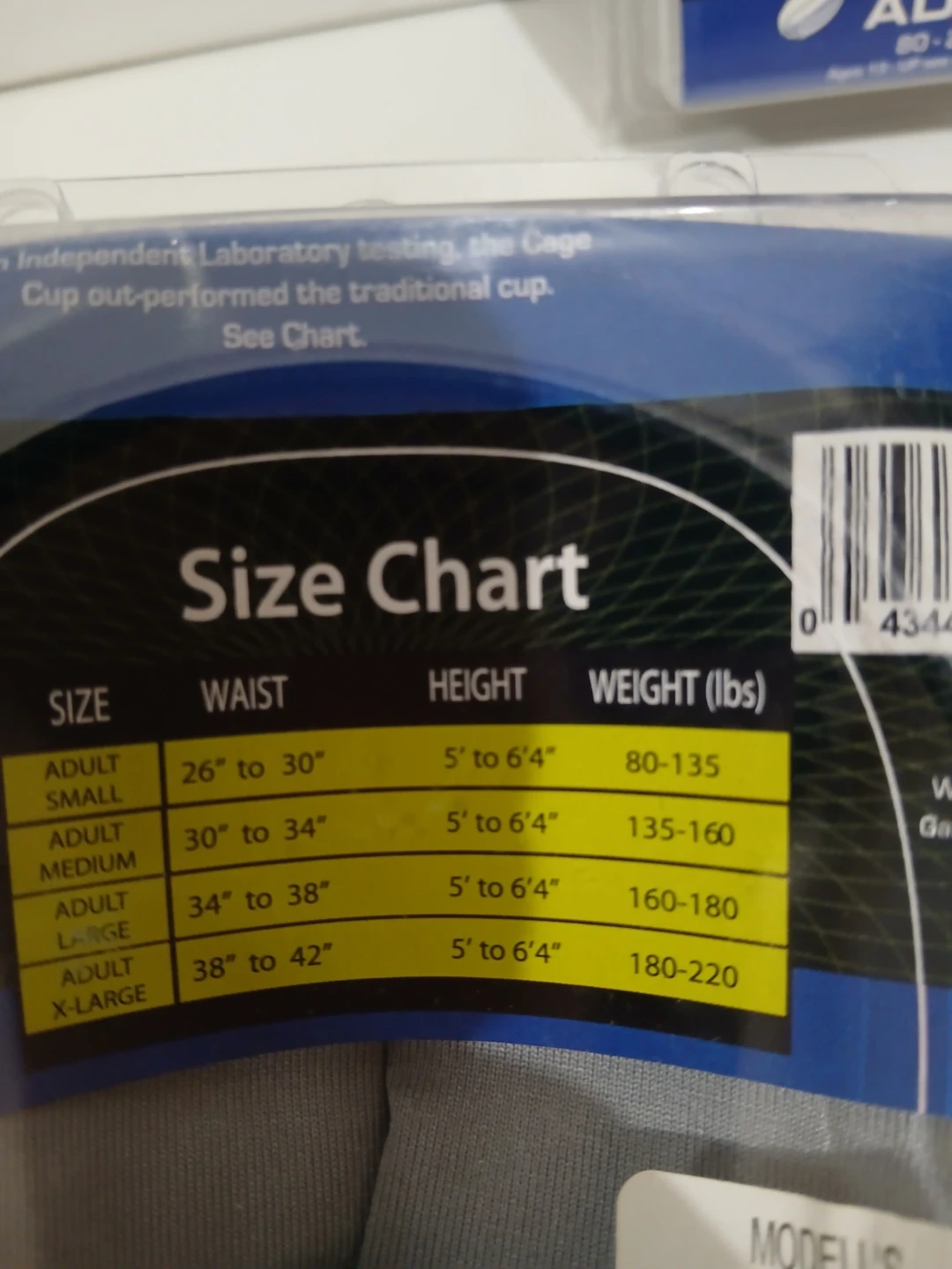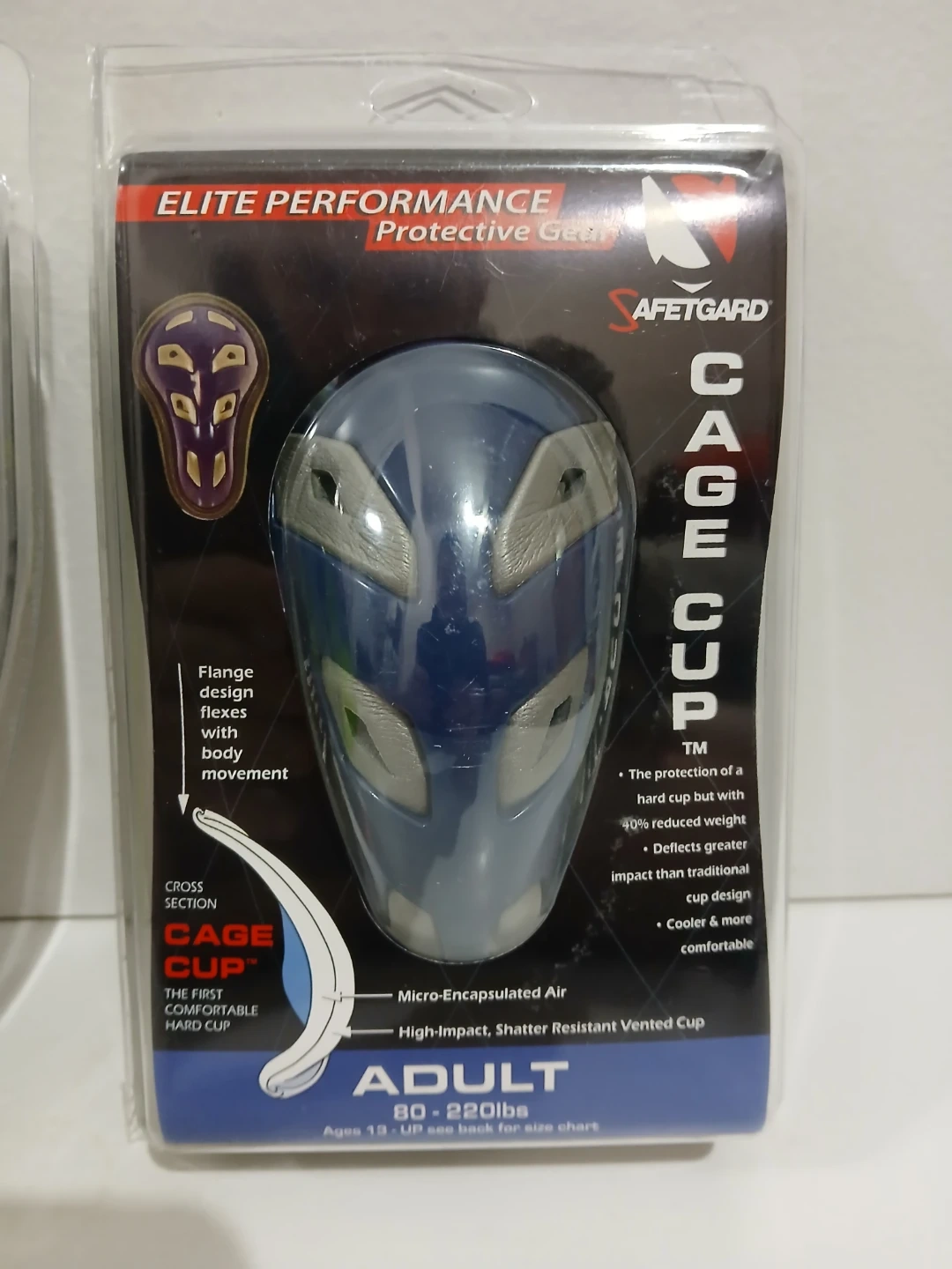 This Elite Performance Cage Cup is designed for adult protective gear. It offers shatter resistant vented cup design with flange for body movement. It's made for ages 13 up and fits adults weighing 80-220 lbs two pairs
