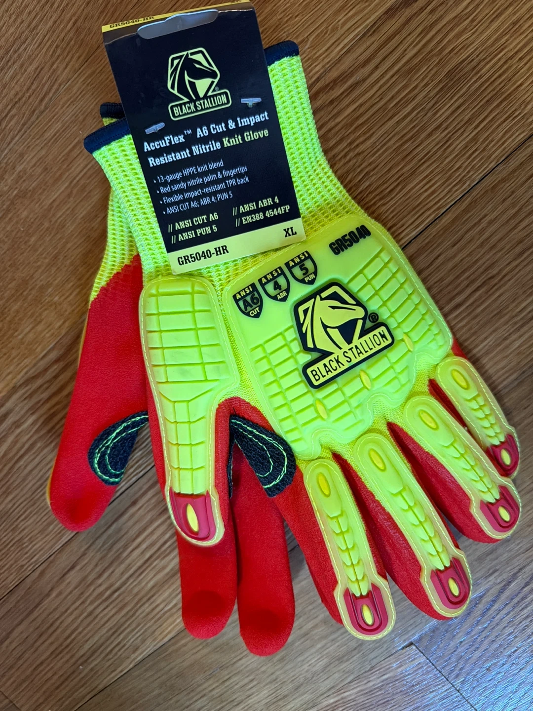 Selling a pair of new Black Stallion AccuFlex A6 Cut & Impact Resistant Nitrile Knit Gloves in size XL! These gloves feature: