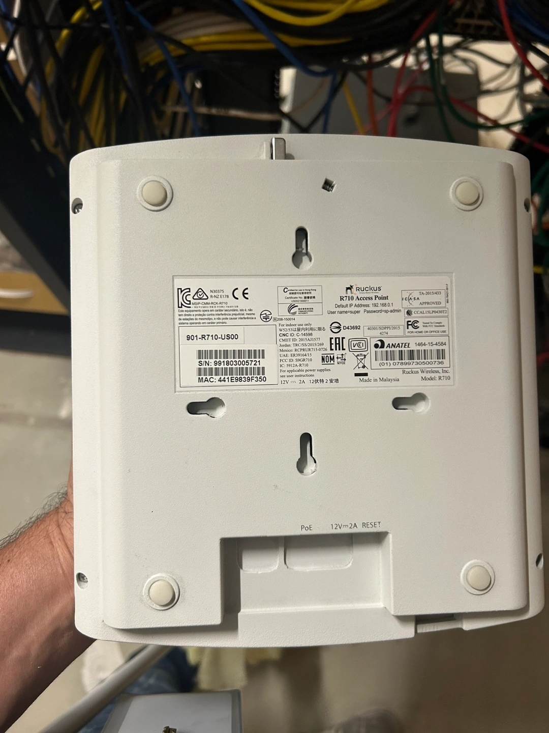Pre-owned Ruckus R710 Access Point. White plastic casing. Multiple ports on the back. Model number visible on label. Many available in stock