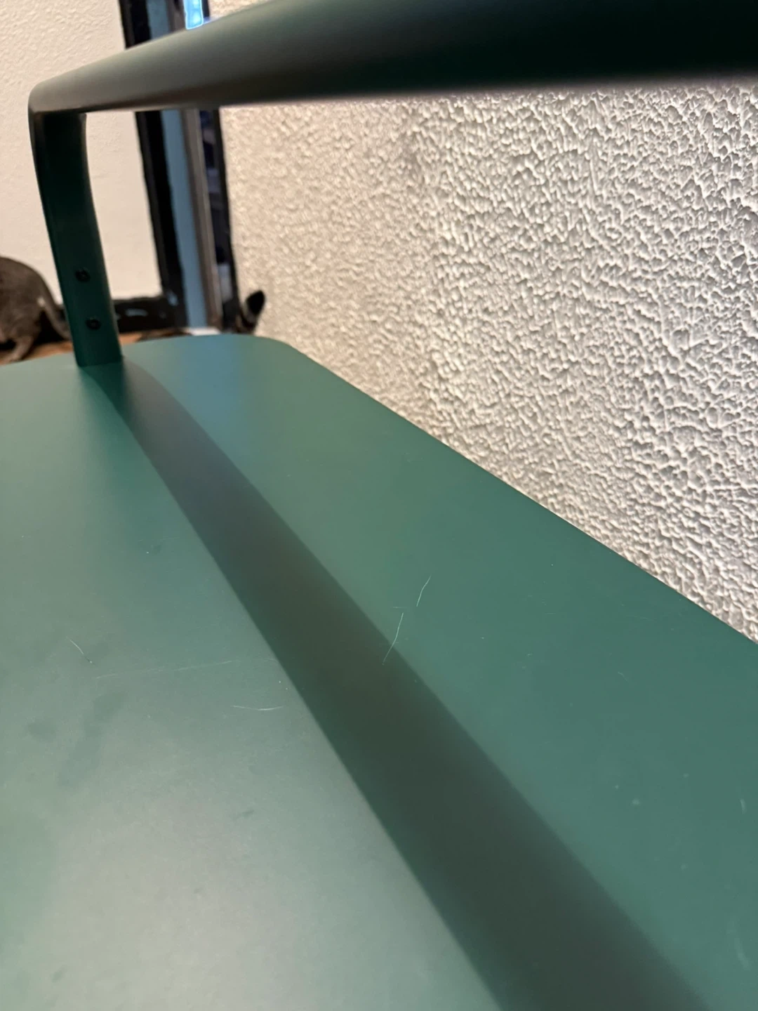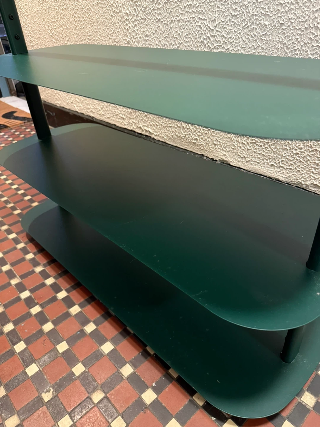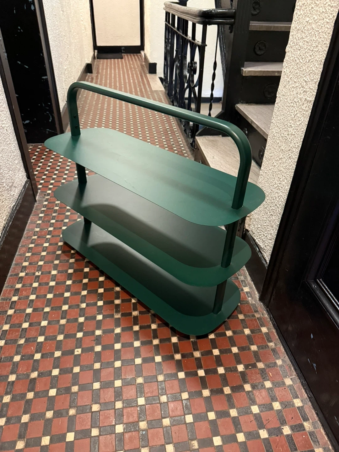 Open Spaces entryway shelves/shoe rack in green. Clean, modern design that was popular on social media. This model/color has since been discontinued by Open Spaces.